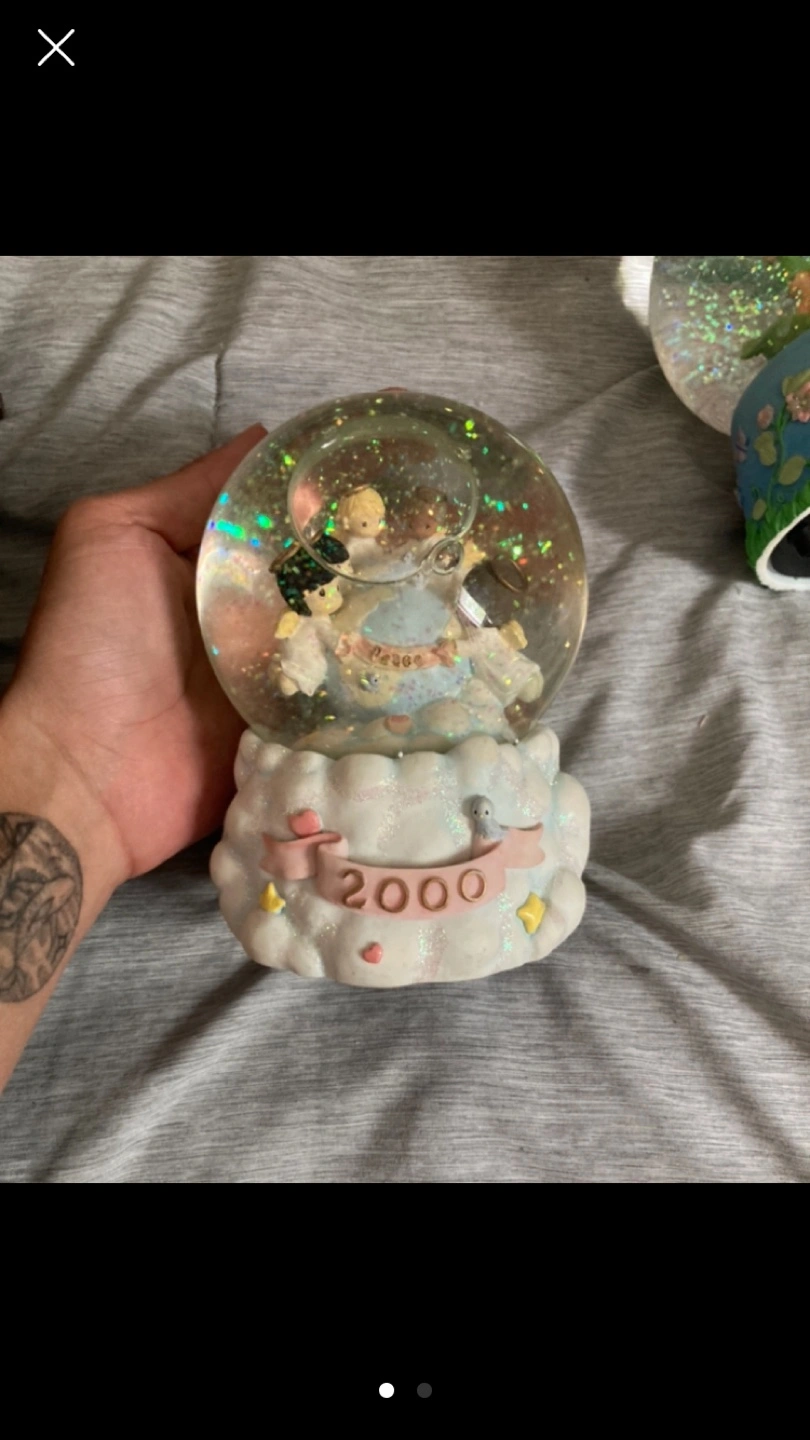 Musical snow globe with three angels inside. Includes a small bird on the base.