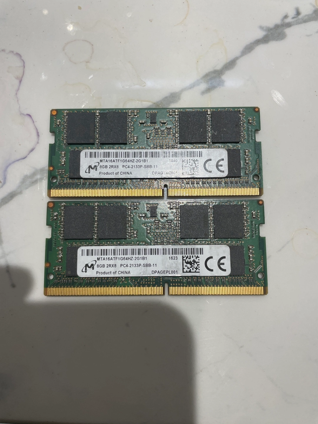 2x 8GB 2RX8 PC4-2133P-SBB-11 DDR4 RAM sticks. Each of these $20 Total:$40