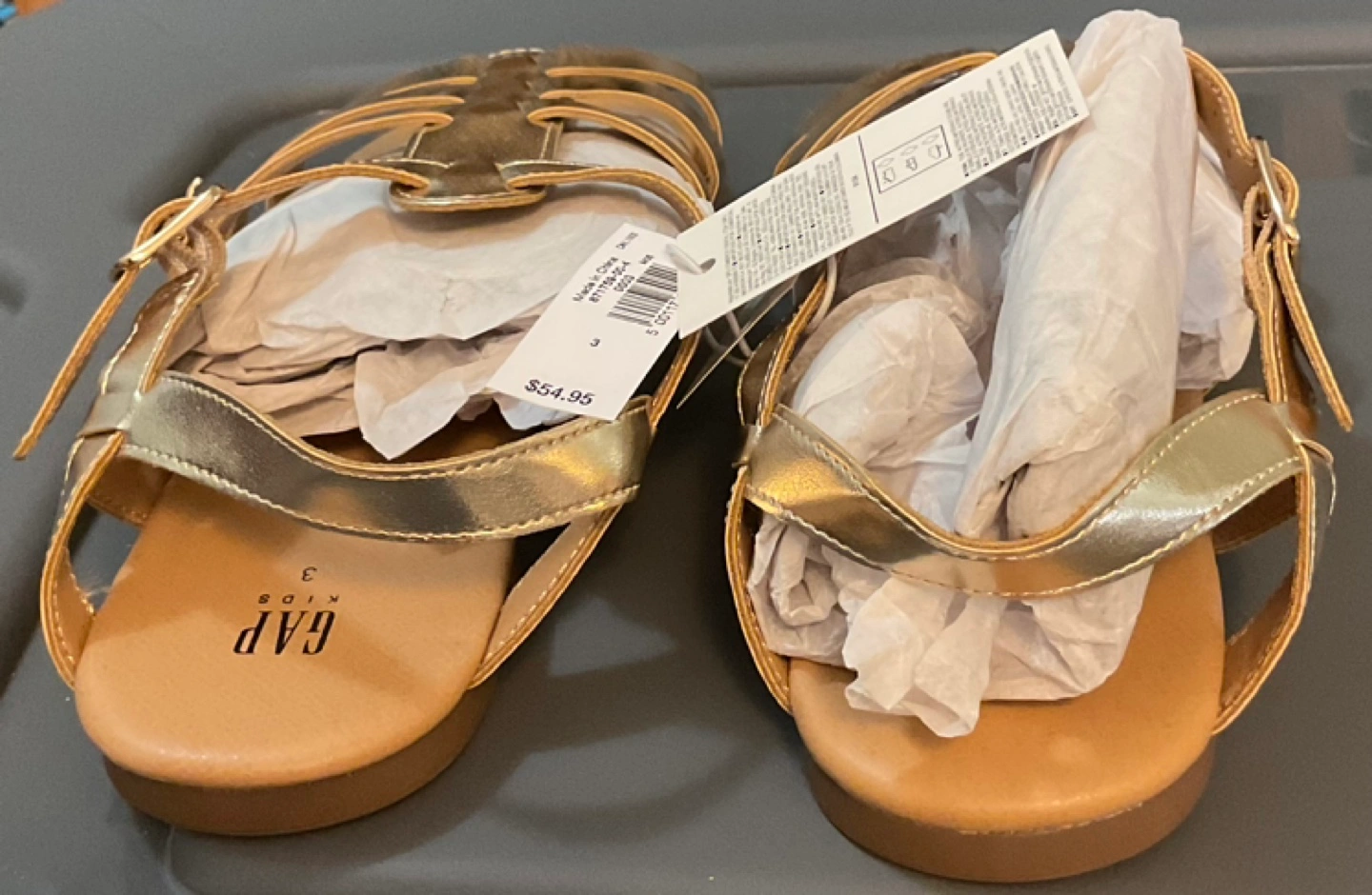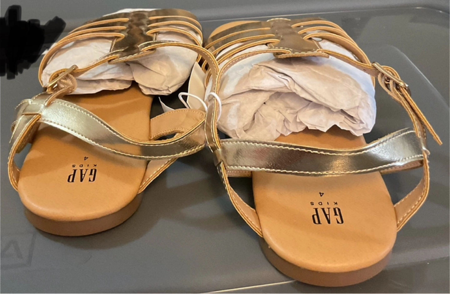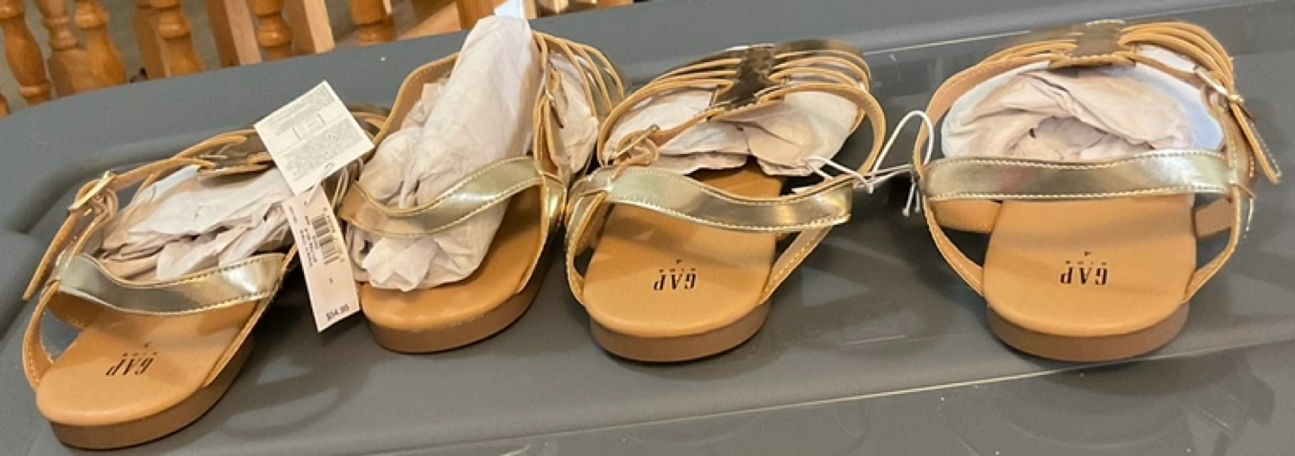 Two pairs of brand new Gap Kids sandals with tags, size 3 and 4. Gold colour. Both my children grew out of them. Firm price-$15 for each or $30 for both