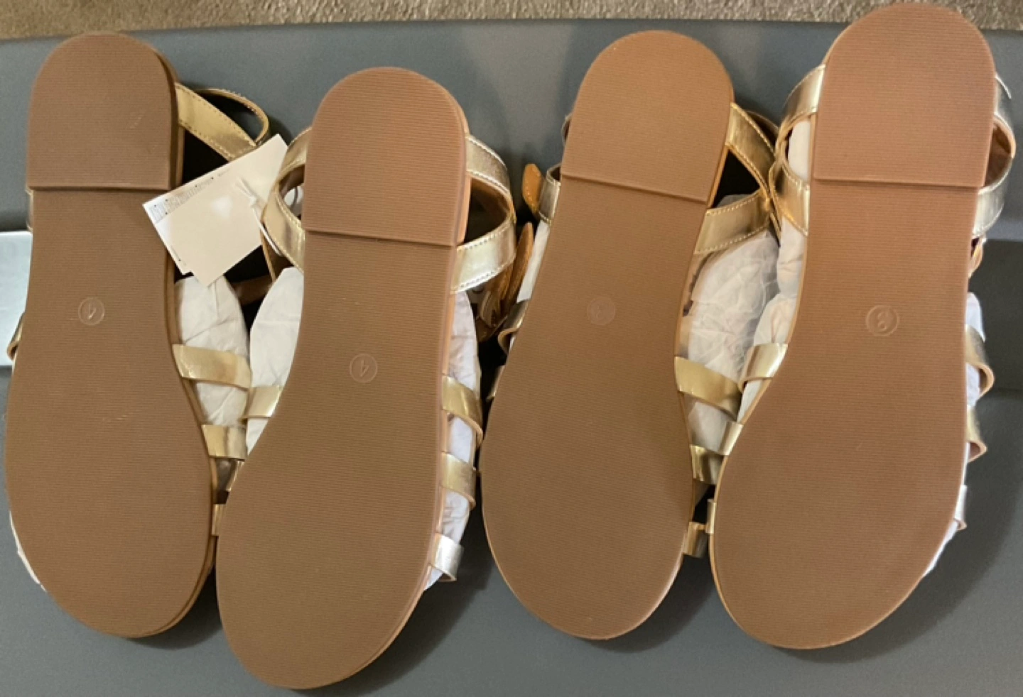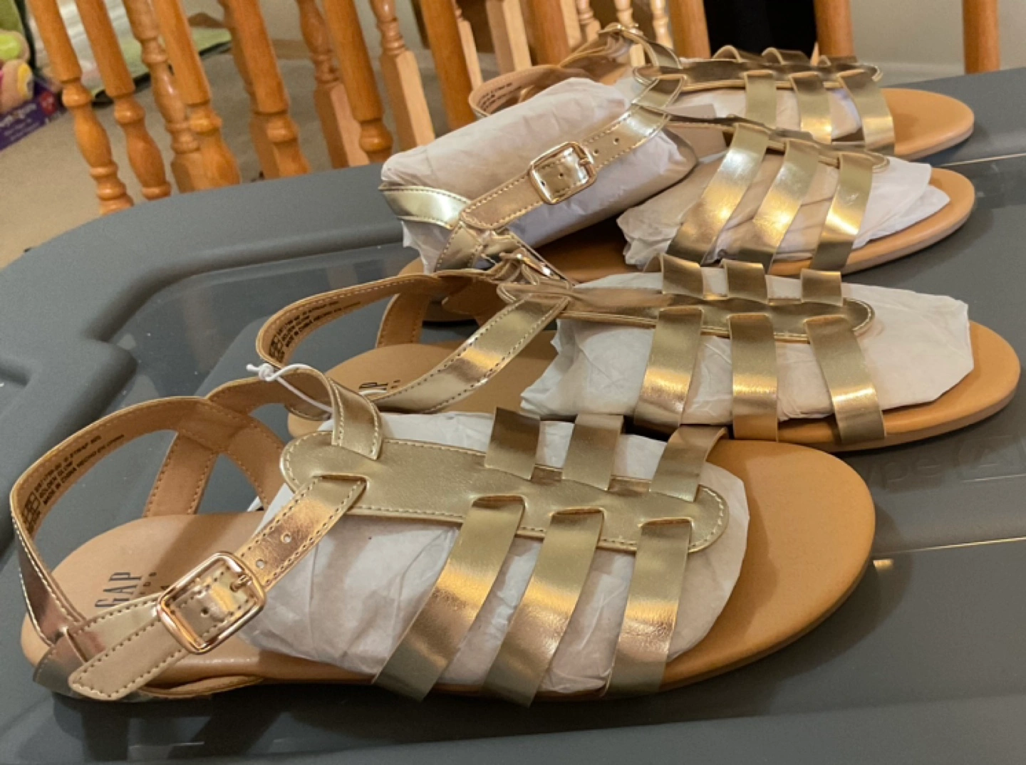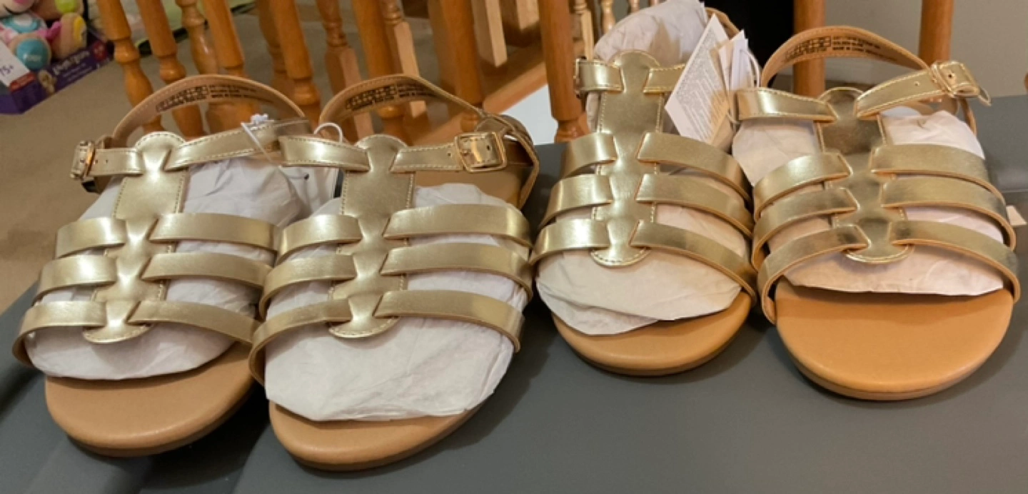Two pairs of brand new Gap Kids sandals with tags, size 3 and 4. Gold colour. Both my children grew out of them. Firm price-$15 for each or $30 for both
