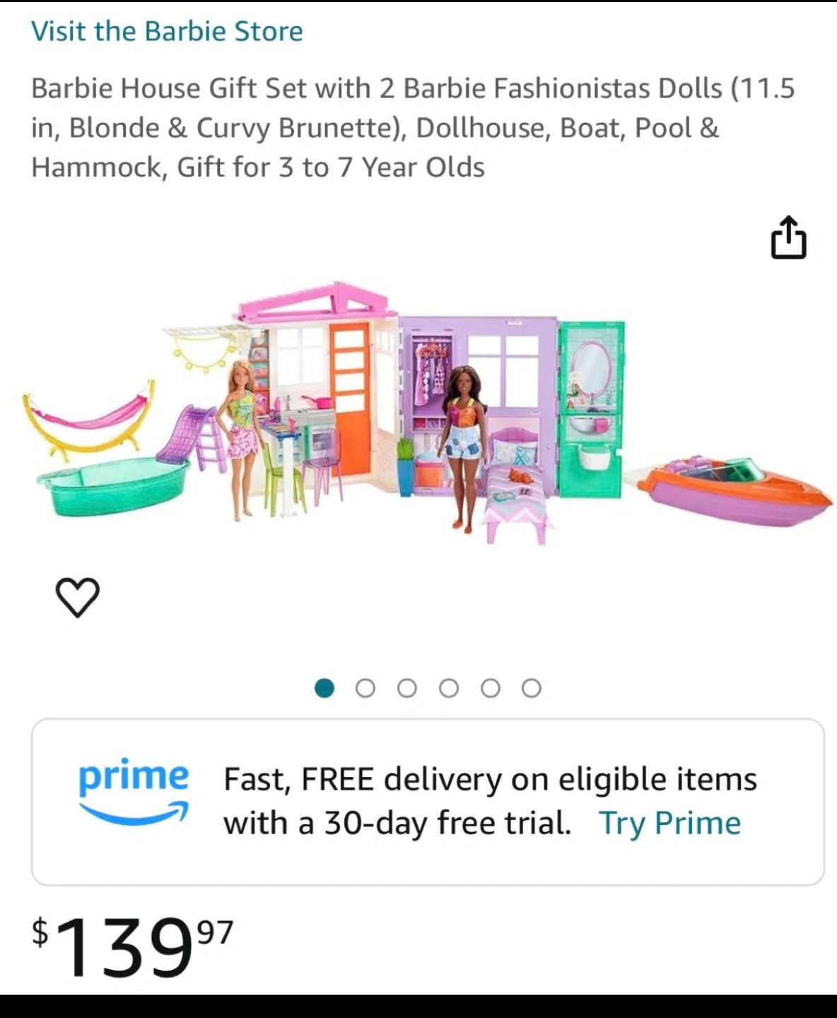 Kids can play out dream vacations with this Barbie dollhouse gift set featuring 2 Barbie Fashionistas dolls and everything they need for fun in the sun. Perfect for summer vacation, the Barbie house features kitchen, bedroom and bathroom play areas and folds for on-the-go fun! Kids can fill the pool with water and send Barbie dolls down the slide to make a splash, and relax in the freestanding hammock with an adorable pet kitten. The sporty Barbie boat floats in water and features room for 2 dolls! Expand storytelling with accessories including life vests, snorkel gear, smart phones, sunblock and face masks. ***** Pick up at 315 Osler street. Cash only.Asking Price $125. FIRM PRICE. Low ballers will not be answered my price is fixed. No Refunds / Exchange. If you see it posted on here it means it is still available, so please don't ask. No Holds. Just tell me when would you like to pick up.Feel free to also check my other listings! ***First come first serve. Available Weekdays 10:30-1 then after 6:30-7:30.