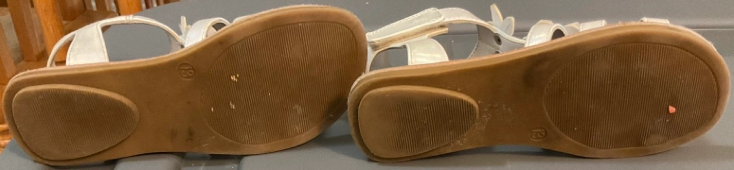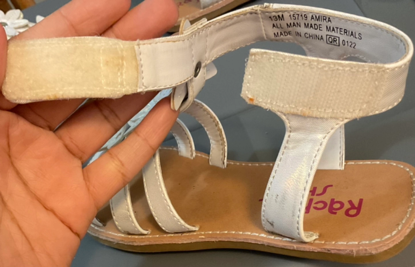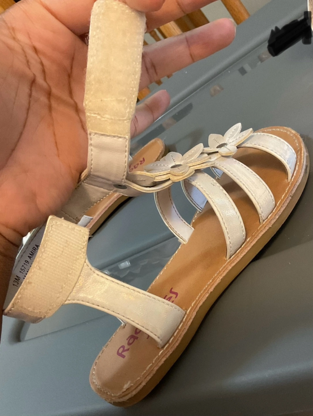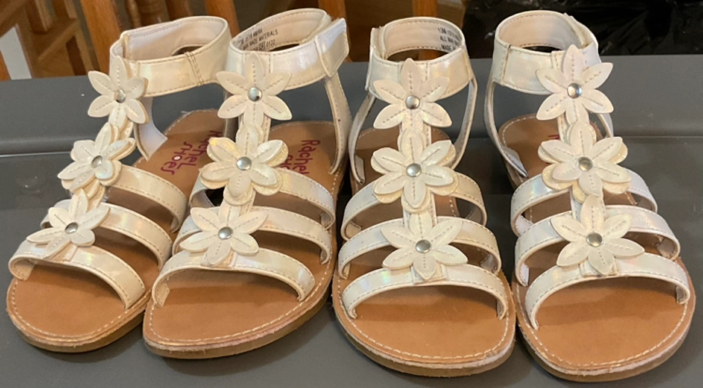 Selling used white-iridescent sandals with velcro closures and flower accents for kid/girls in size 13M. They’re in great condition with everything intact. Firm price, selling as is for $10 each or $20 for both.
