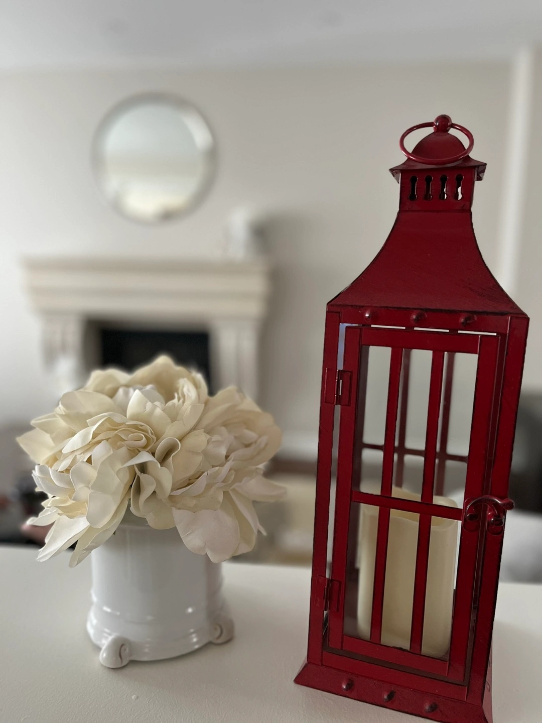 17" Vintage Candle Red Lantern with LED Flickering Flameless Candle. Can be used for Tabletop, Outdoor or Hanging Lantern for Gazebo.