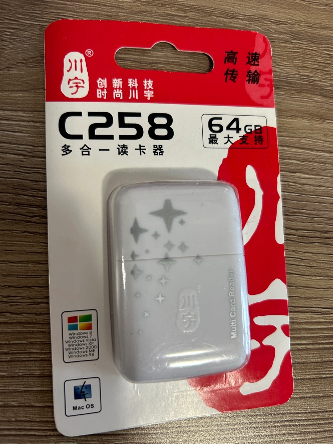 White USB 2.0 card reader with multiple card slots. Features high speed transmission, hot plug and play, and no need for external power supply. Supports Windows, Mac OS, and Vista. If system asks for scan and fix, do so then it functions to access read the cards. have three of them. One is opened for a testing. All new. $3 for each