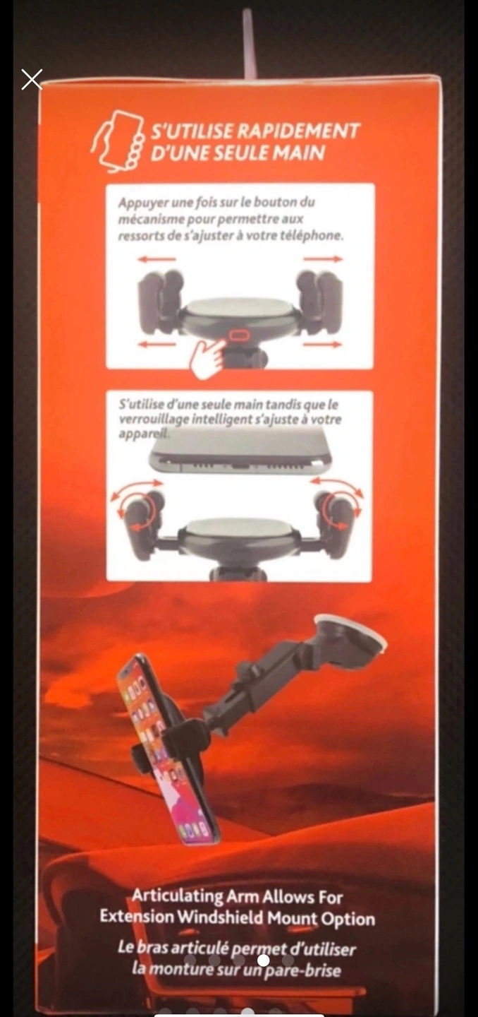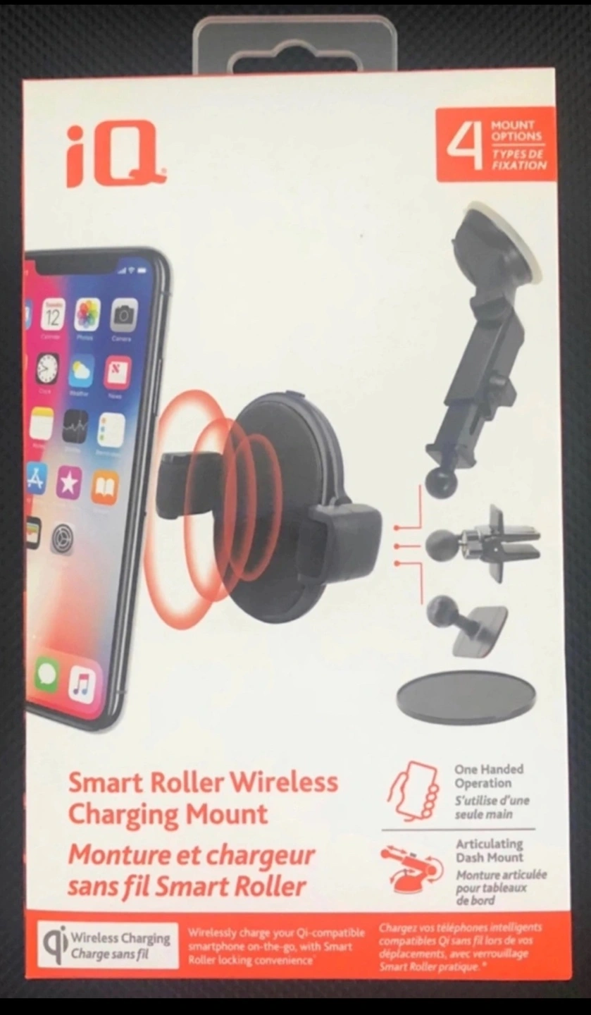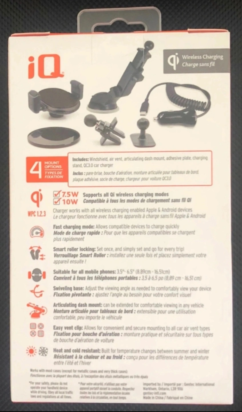 BRAND NEW SEALED BOX * 4 Mount Options Includes: Windshield, air vent, articulating dash mount, adhesive plate, charging stand., OC3.0 car charger * Wirelessly charge your Qi-compatible smartphone on-the-go (7.5W, 10W) * Works with all wireless charging enabled Apple & Android devices * Super fast one handed operation * Heat & cold resistant for year round durability