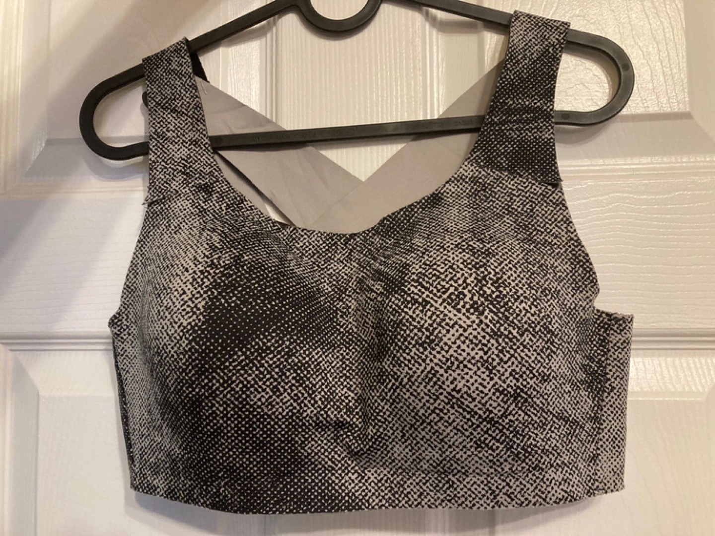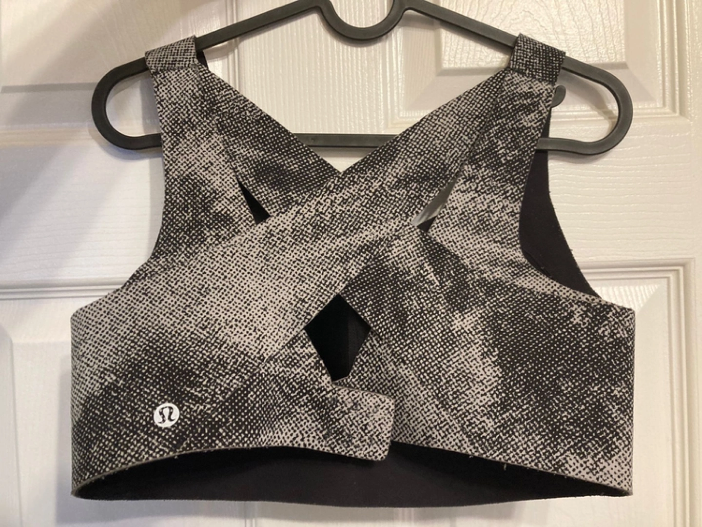 Lululemon bra, size 36C, black and white pattern. Cross back design. Pick up near Finch station only. Cash only. No trades. No lowball offers. If the ad is up then the item is still available.