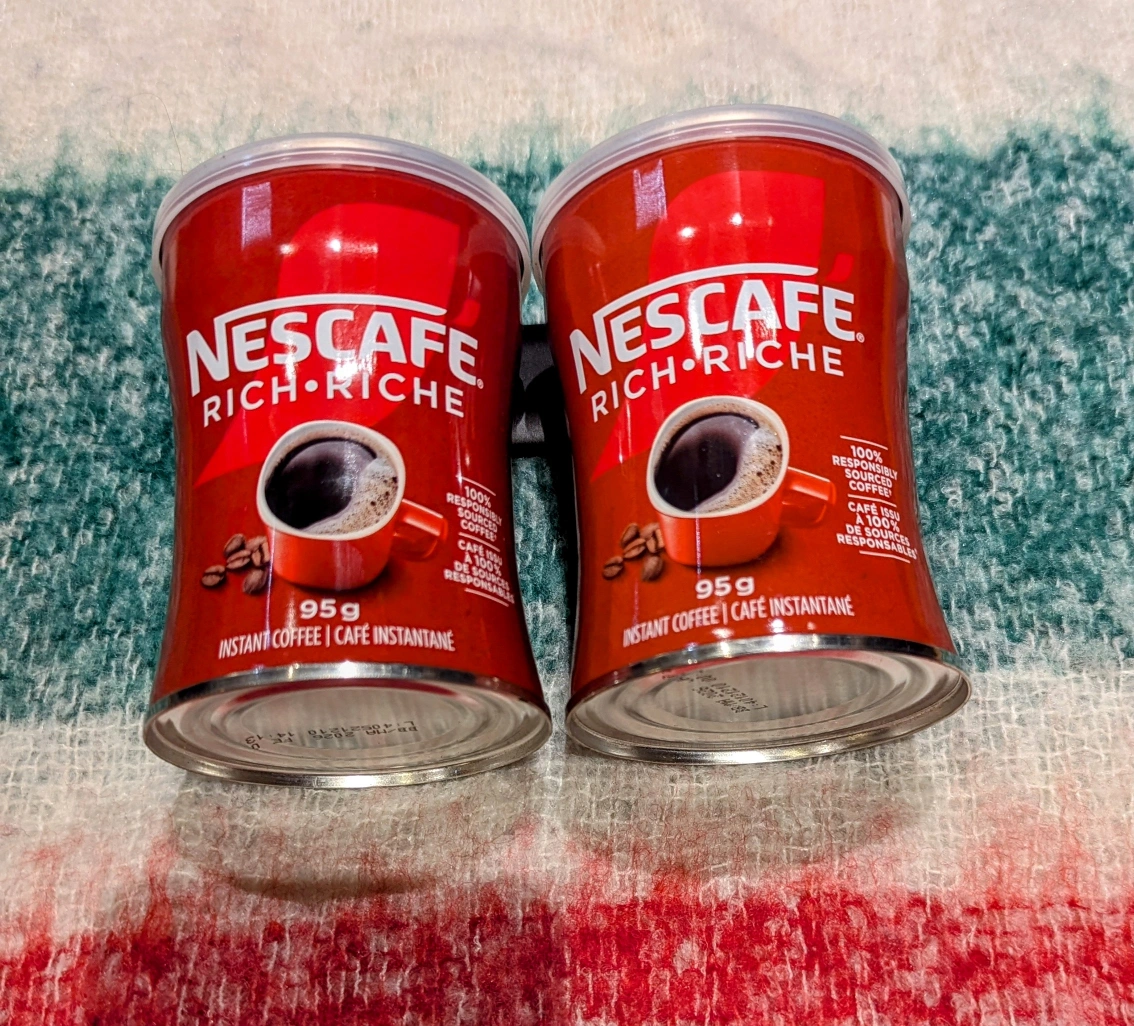 Brand new and sealed. Two 95g cans of Nescafe Rich Riche instant coffee. Best before January 2026.
