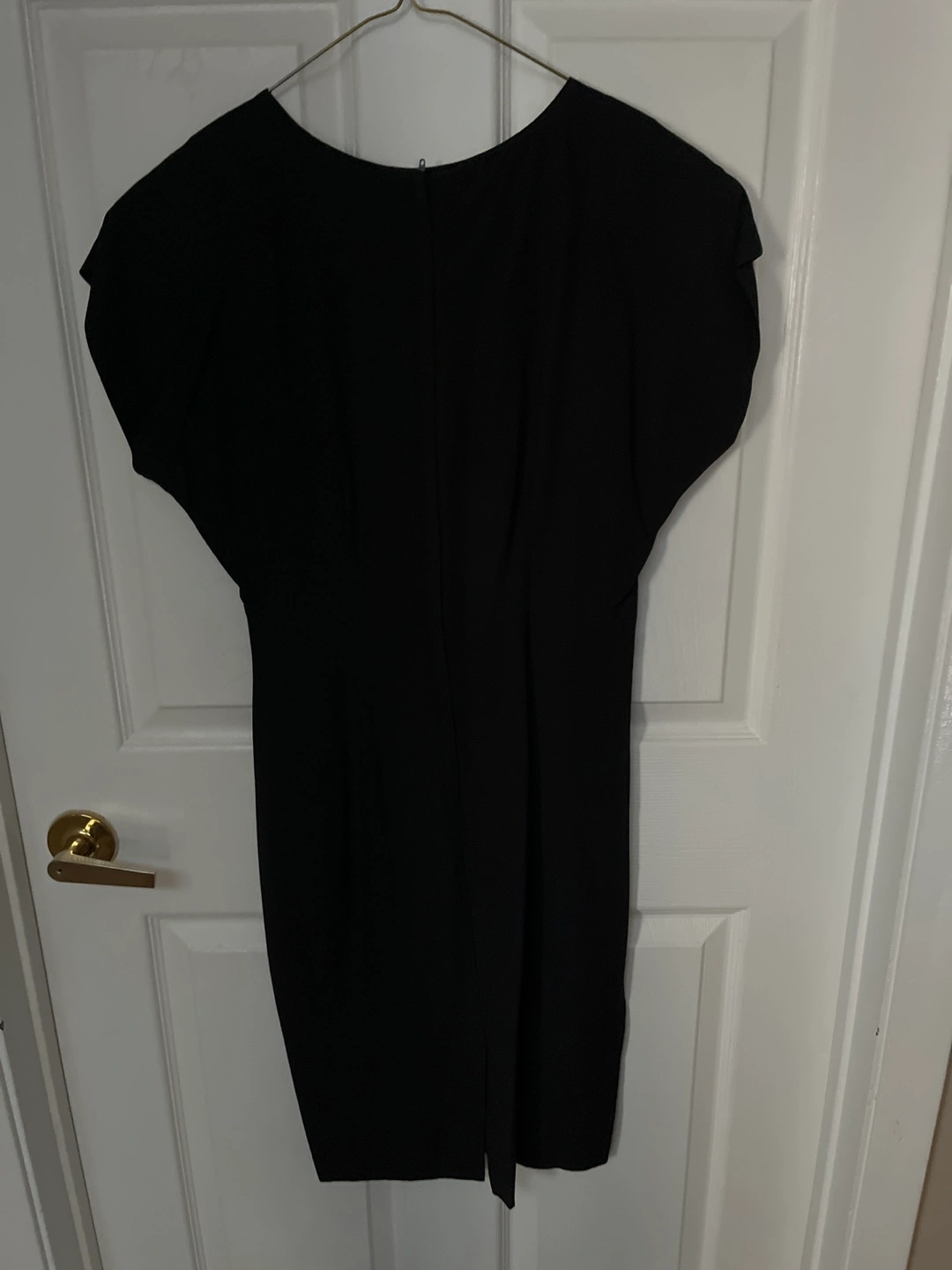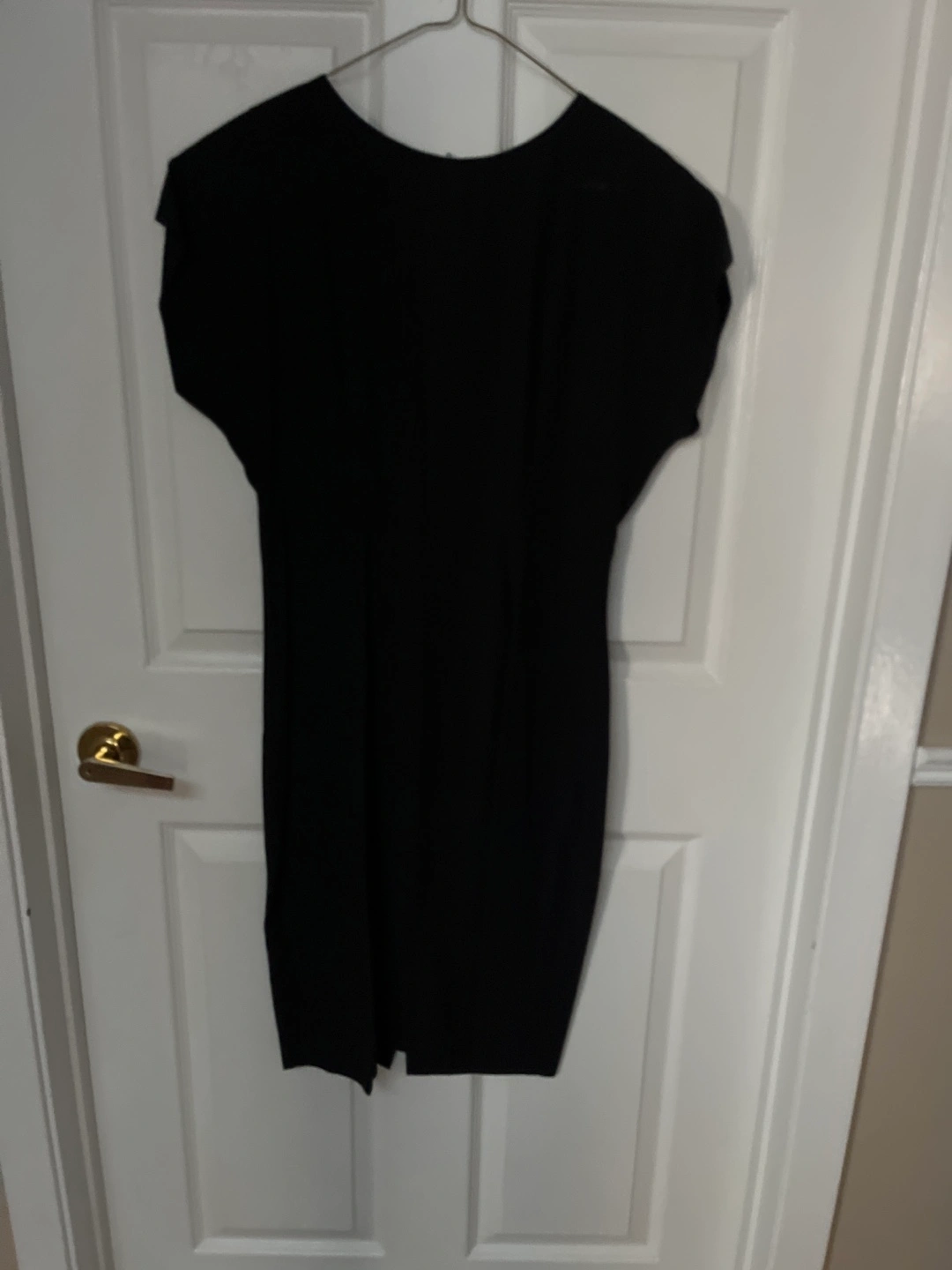 Black dress with short sleeves. Fitted style. Total dress length is 37”