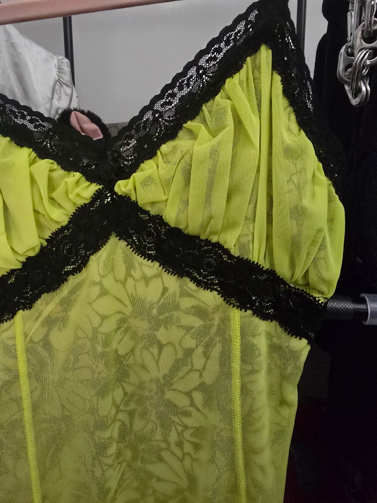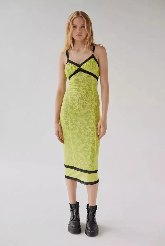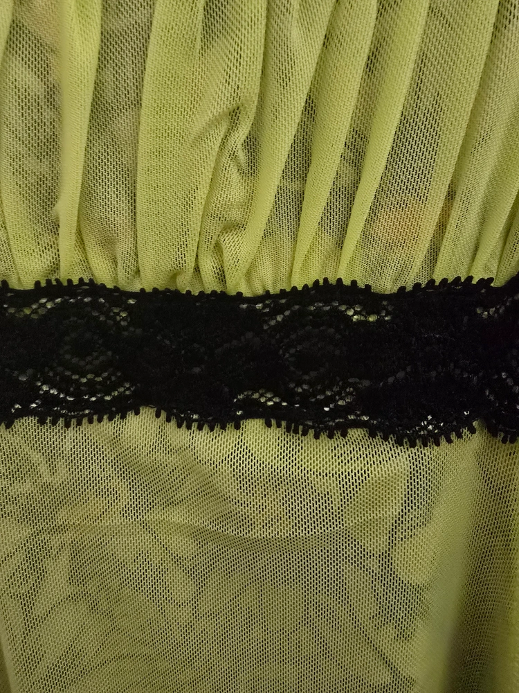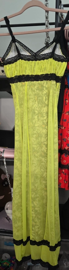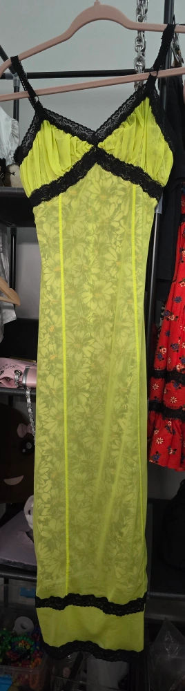Urban Outfitters "Olivia" lace trim midi dress. Long floral slip dress with greenish mesh and black lace and rosette detailing. Original price was ~75$. Only worn once. Price negotiable & open to trades. Delivery possible to most line 1 and line 2 stations.