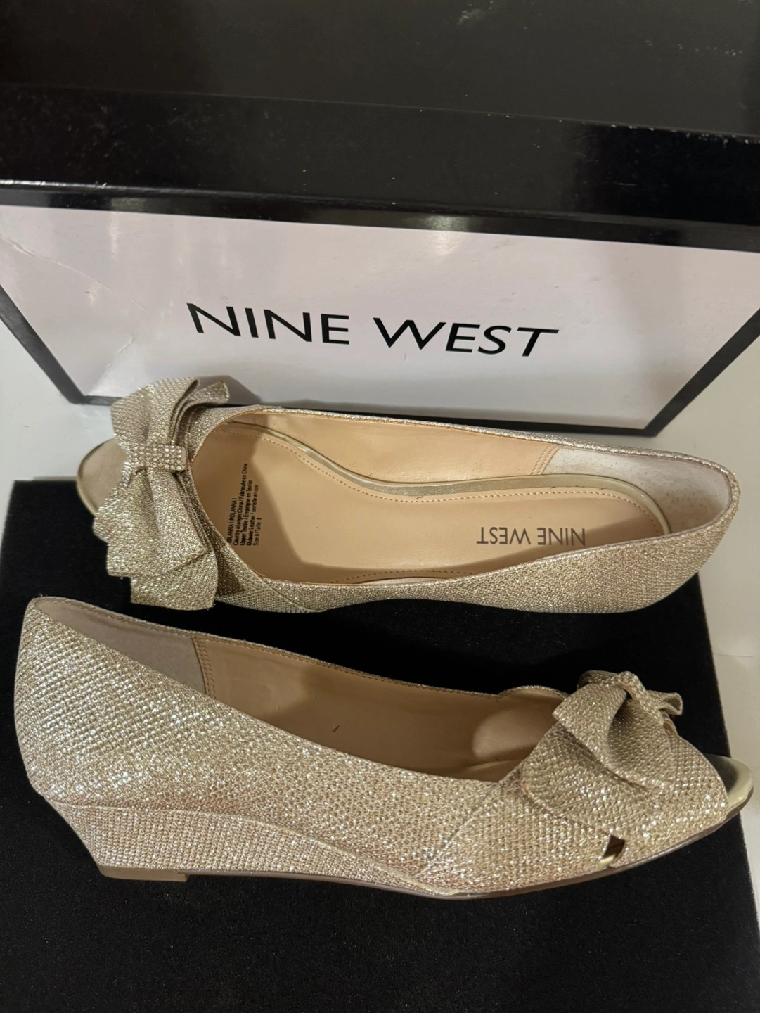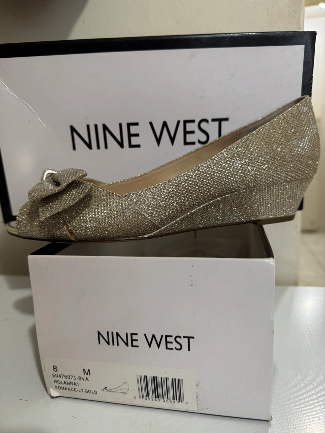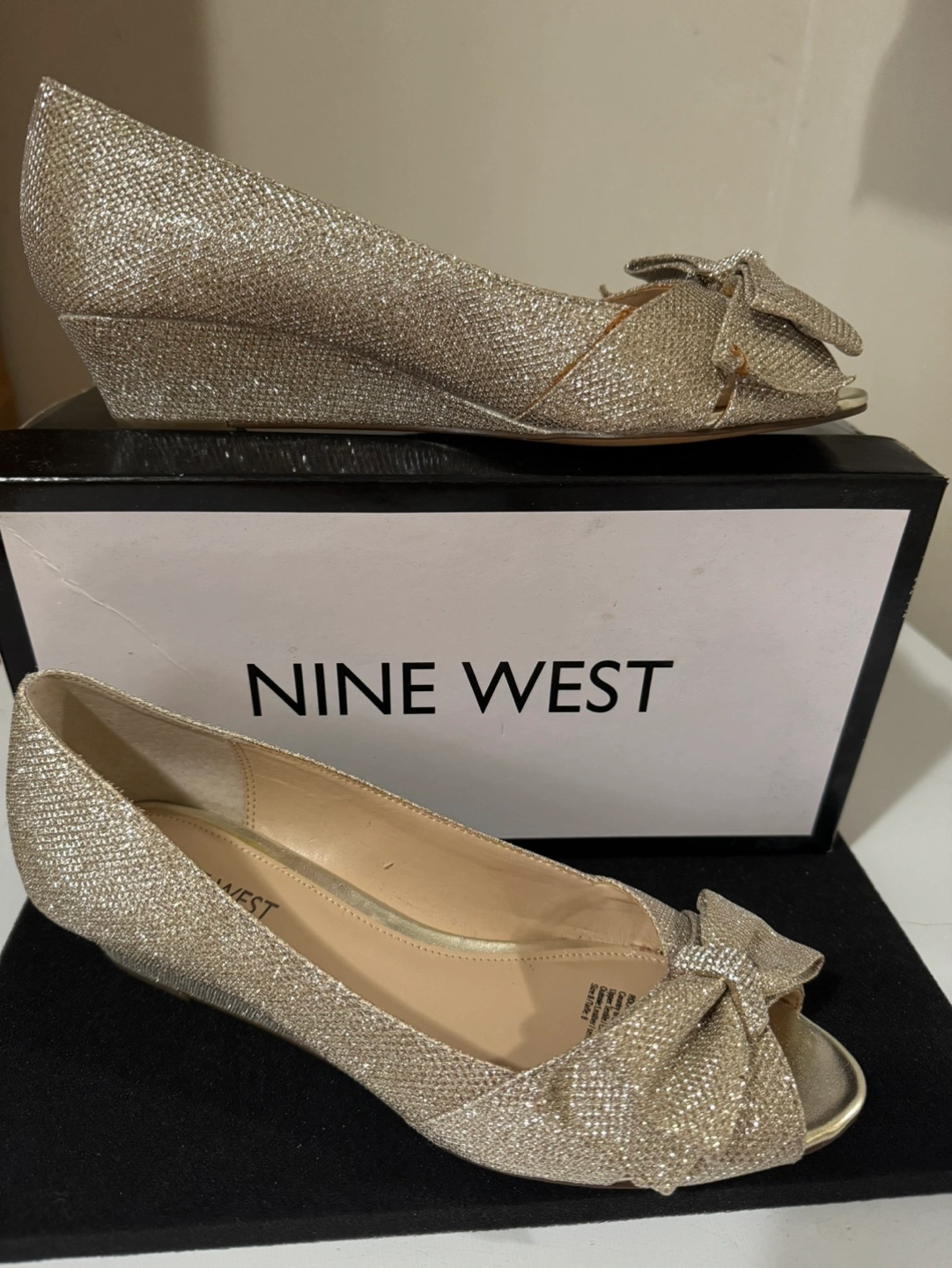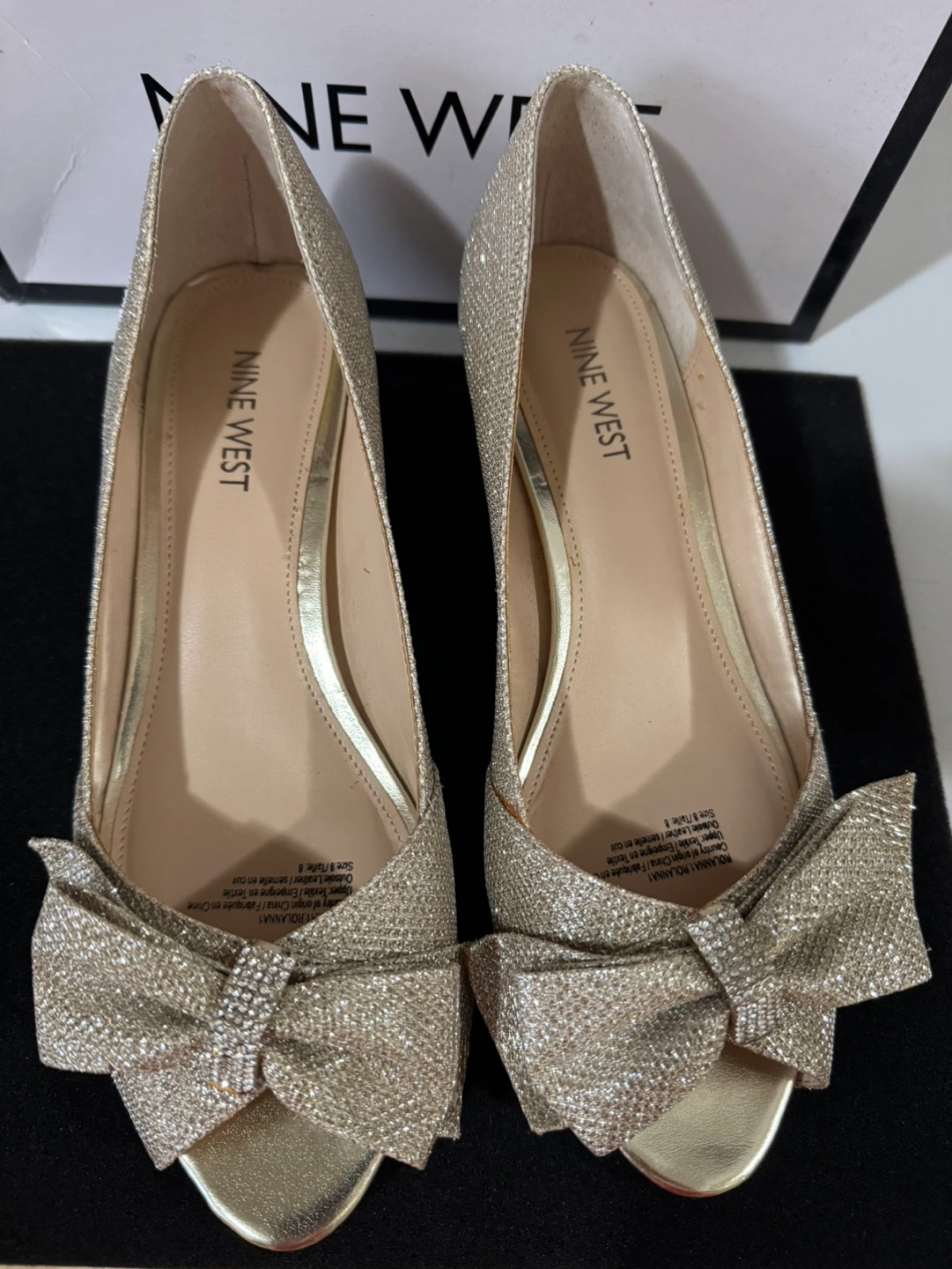 Gold glitter wedge heels with a bow detail. Size 8. Original box Cash Pick up near Lawrence and Keele Open to Offers