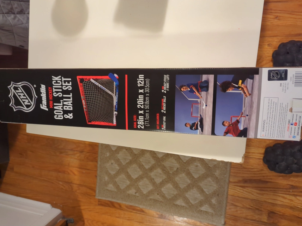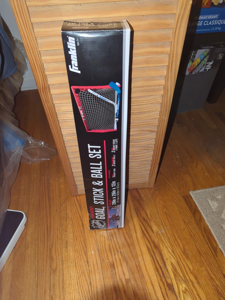 Goal, Stick & Ball Set. 28in x 20in x 12in. Includes: 1 hockey goal, 2 hockey sticks, 2 hockey balls.