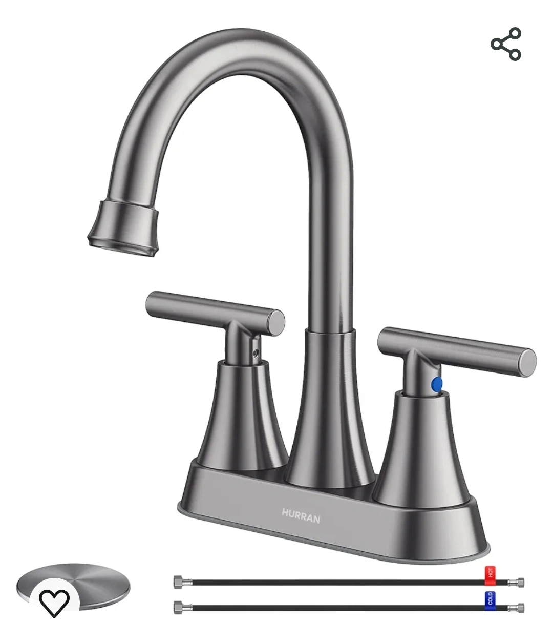 two colors are available. brand new. Double handle, deck-mounted bathroom sink faucet. Includes drain assembly, two braided water lines, and mounting hardware.
