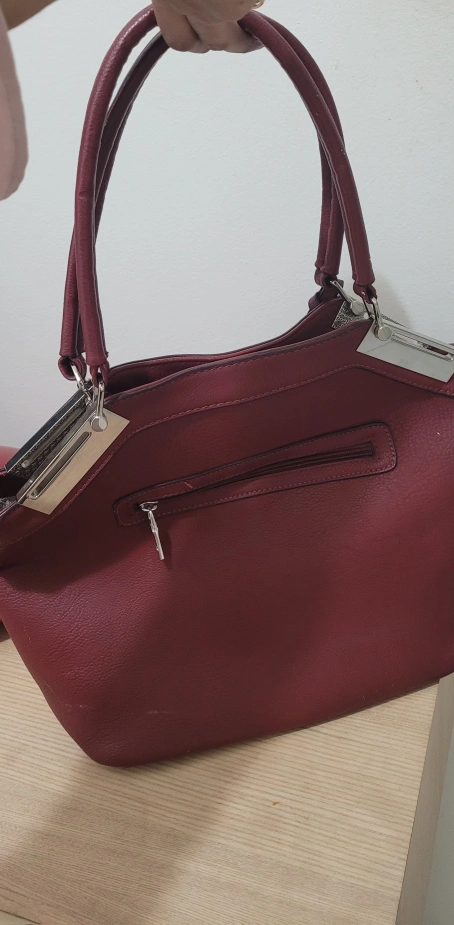 Red handbag with silver hardware, comes with matching small pouch. Has a zippered pocket inside. ninewest