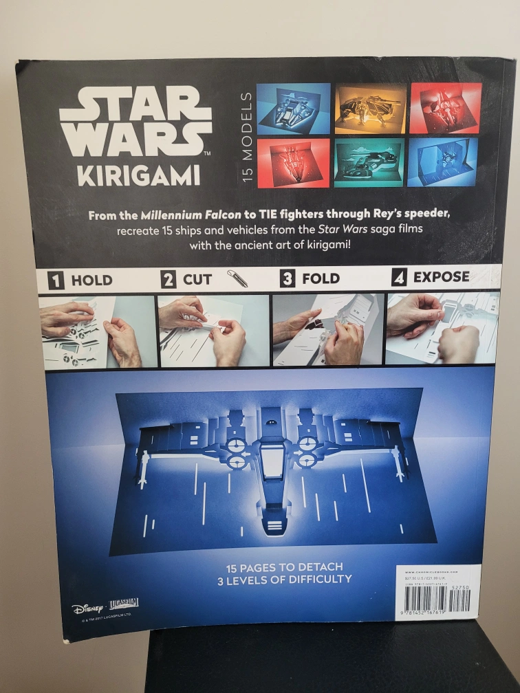 Book featuring 15 Star Wars Kirigami models. Includes 3 skill levels: Beginner, Medium and Expert. Open to trades for video games Details https://www.amazon.ca/Star-Wars-Kirigami-Across-Galaxy/dp/1452167613