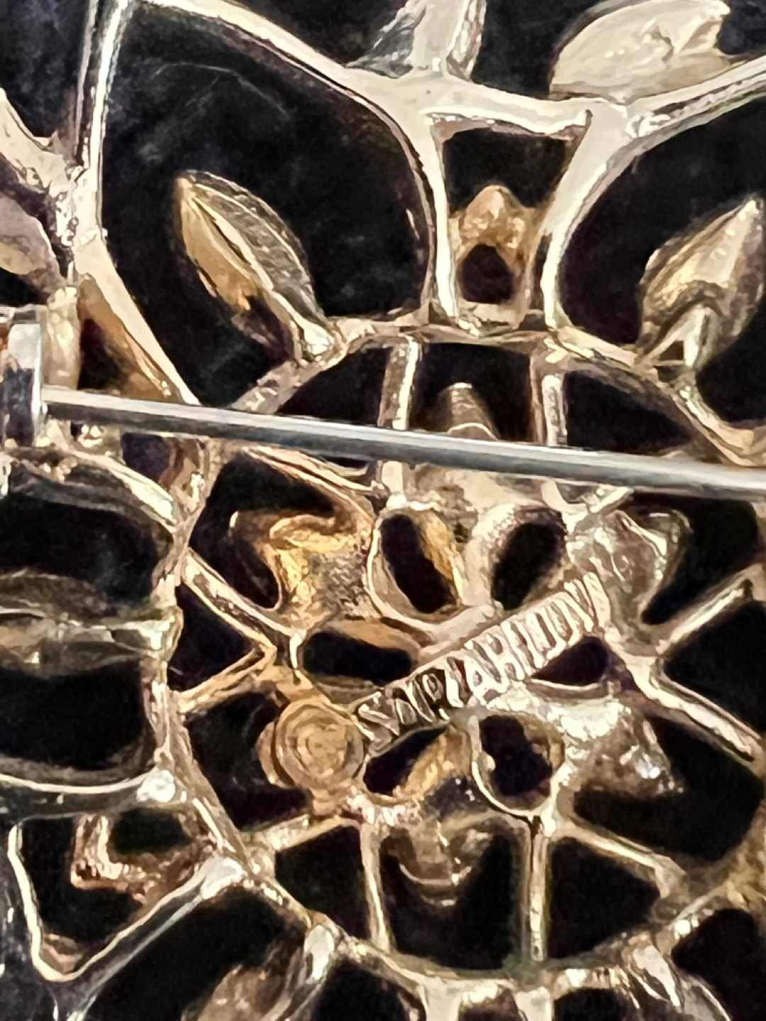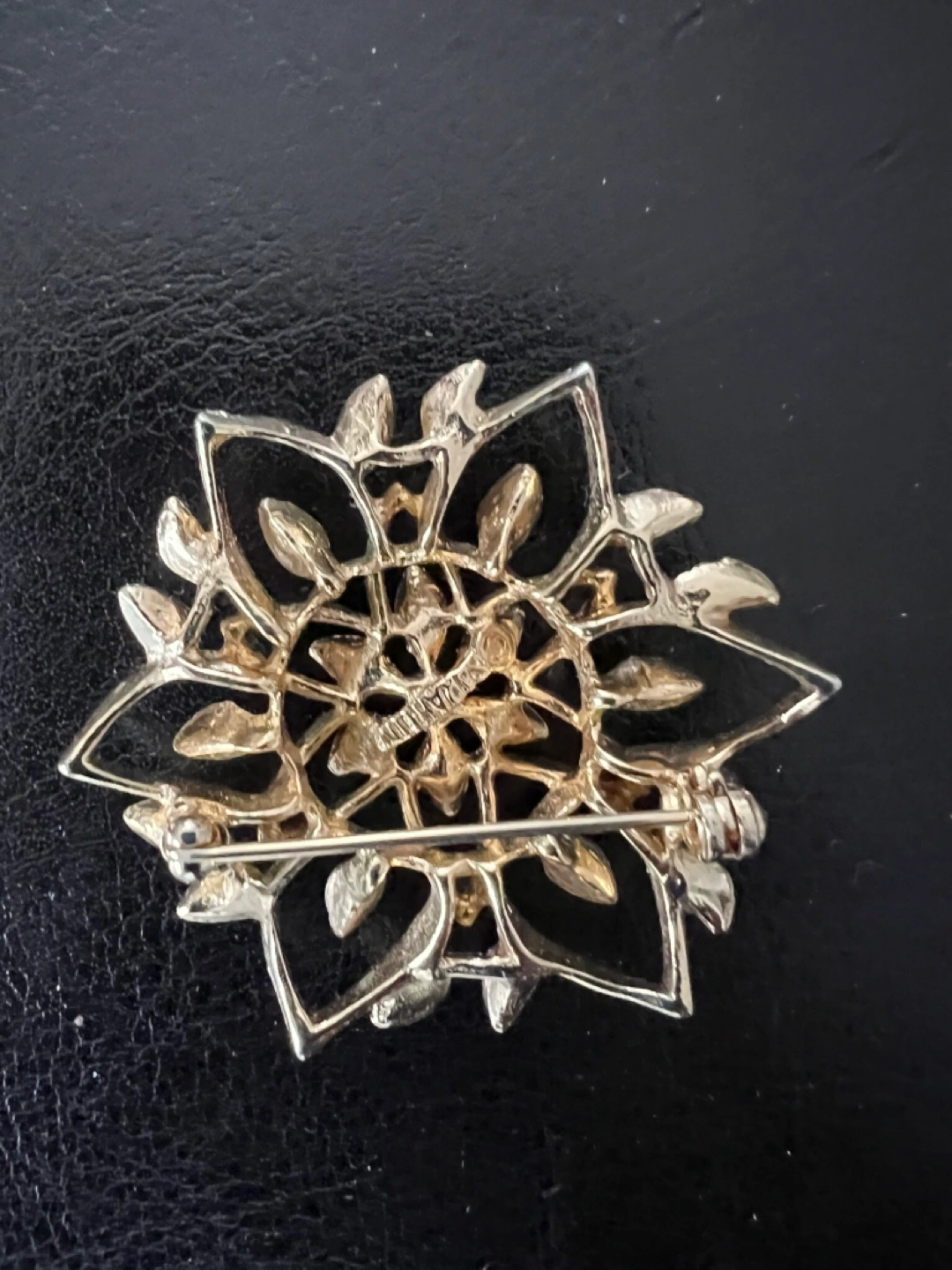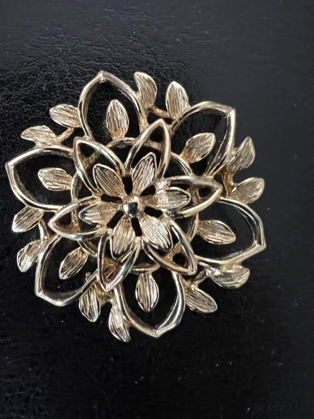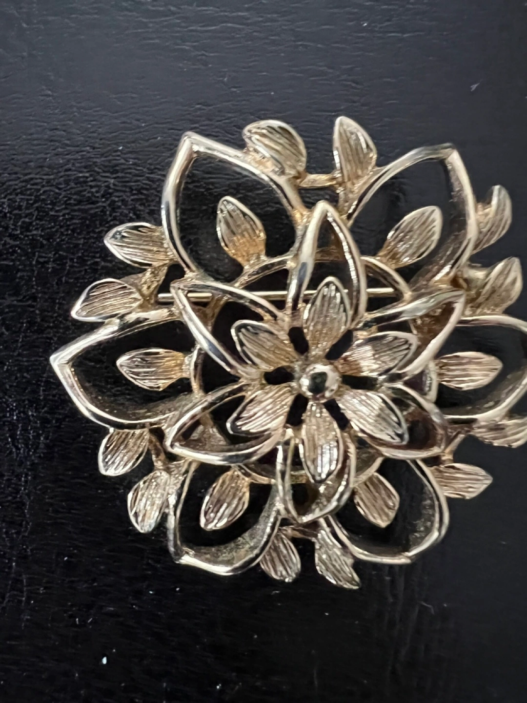 Gold-toned floral brooch. Signed Sarah Coventry on the back. No wear Clasp works great c1950’s