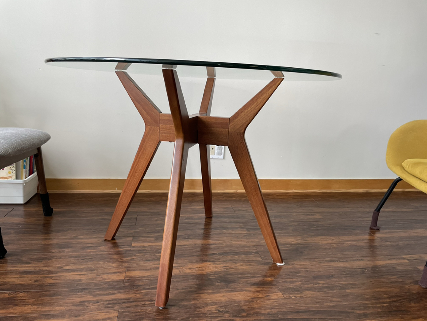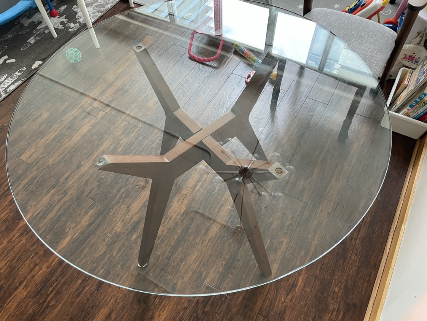 I will give you the table that I used so much that I don't want to let it go as my child grows. Use period is 2 years! I bought it for about $850. Separate glass table and stand. Very stylish and durable!