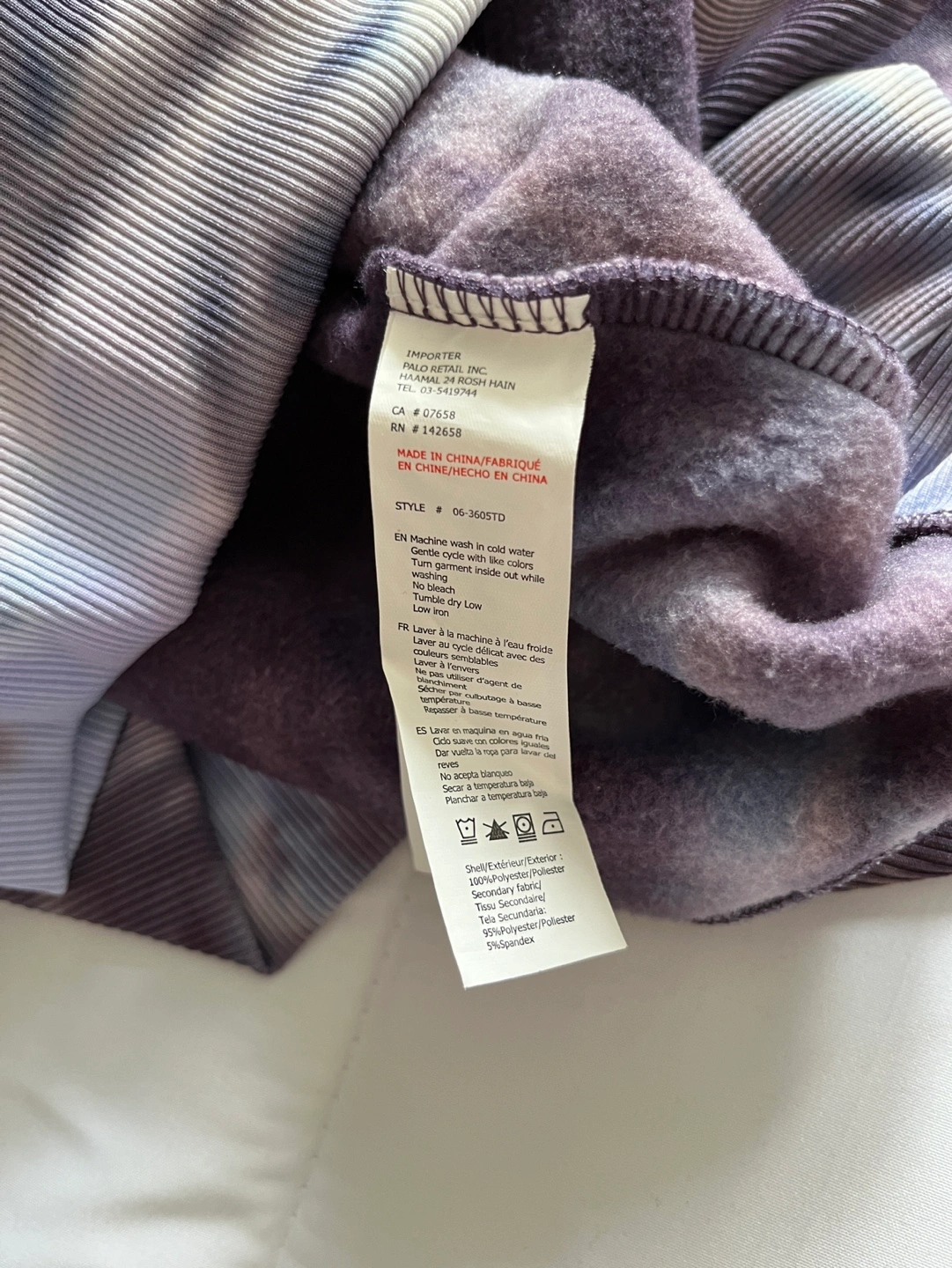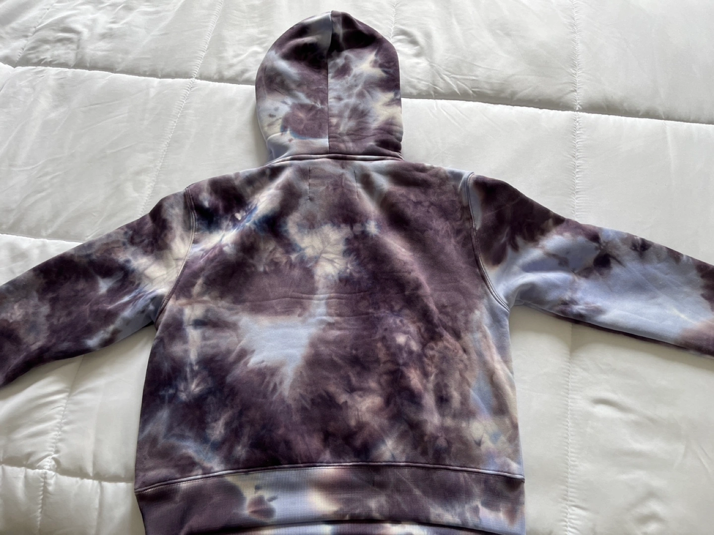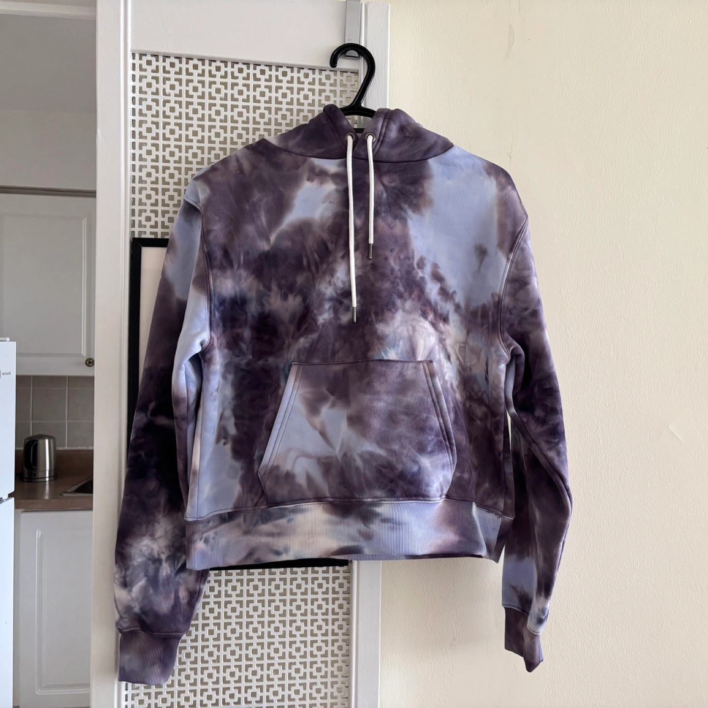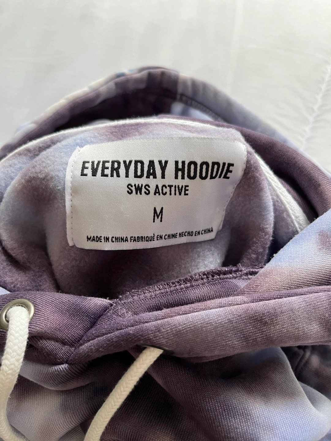Blue and purple tie dye hoodie with a front pocket. Long sleeves and a white drawstrings. Practically brand-new. Warm & comfy! Cash only. Pick up at RBC Bathurst and Sheppard or see my bio for other location options! I’m available to answer any questions :)
