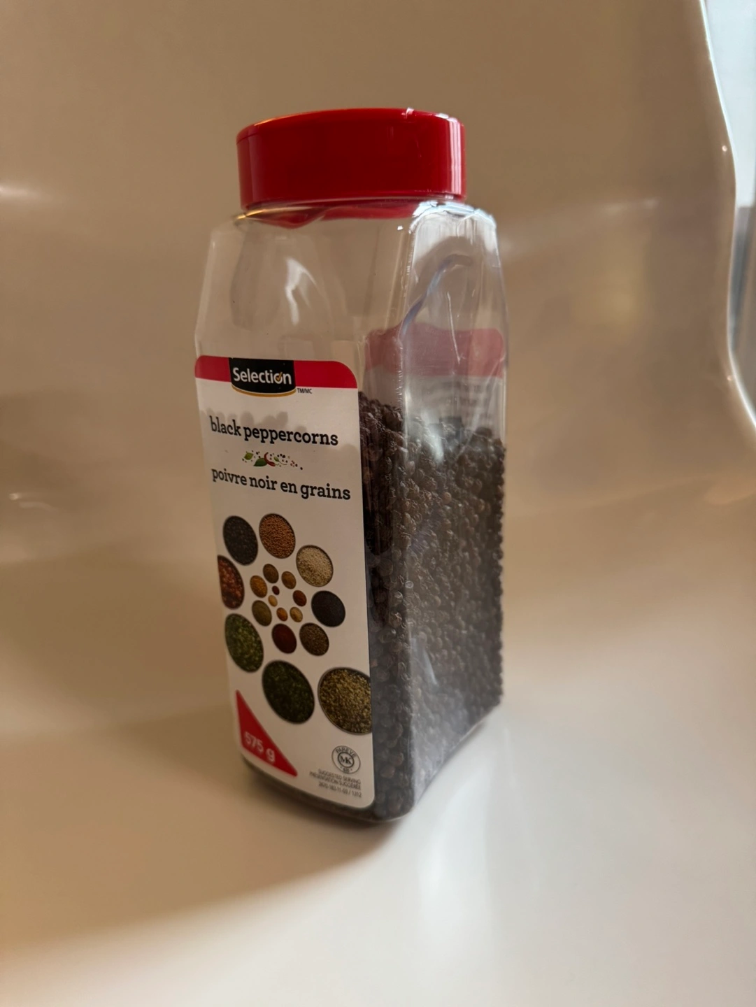 Black peppercorns. Bought 3 months ago. Pick up: 736 Bay St.