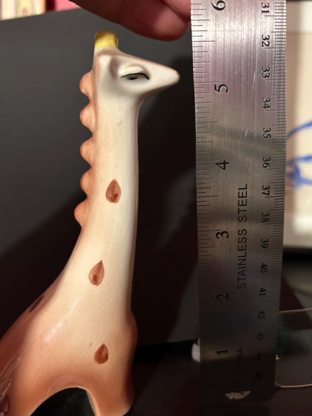 12.00 5.5 inch high Made in Japan 1950s 60s Giraffe or dinosaur Not something you see everyday See also the teak handmade elephant toy figure sculpture I have up now for 15.00 Flexible re pickup Elmsdale Road M4J 3M3 Donlands O'Connor East York Don Mills south exit off DVP