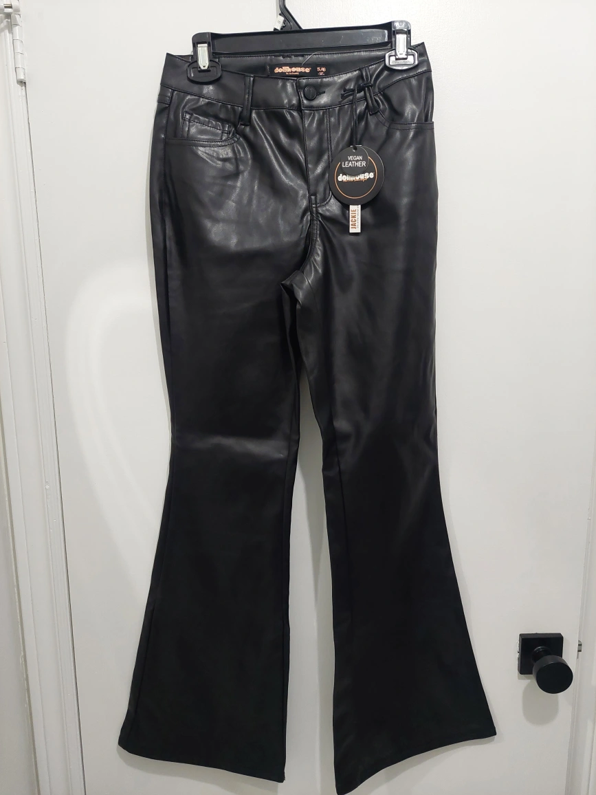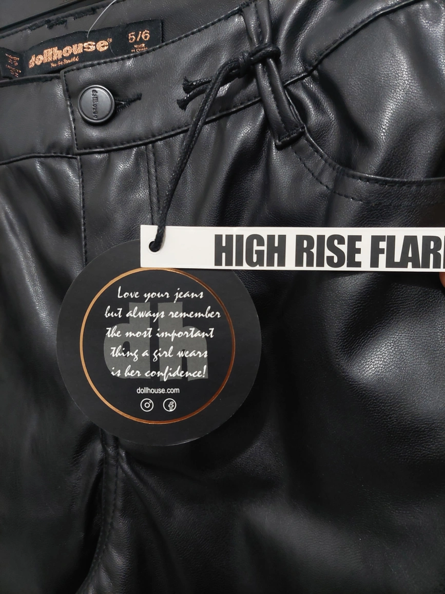 NWT Black vegan leather flare pants. High rise, size 5/6. Treat yourself or your friend with a fashionable trend.