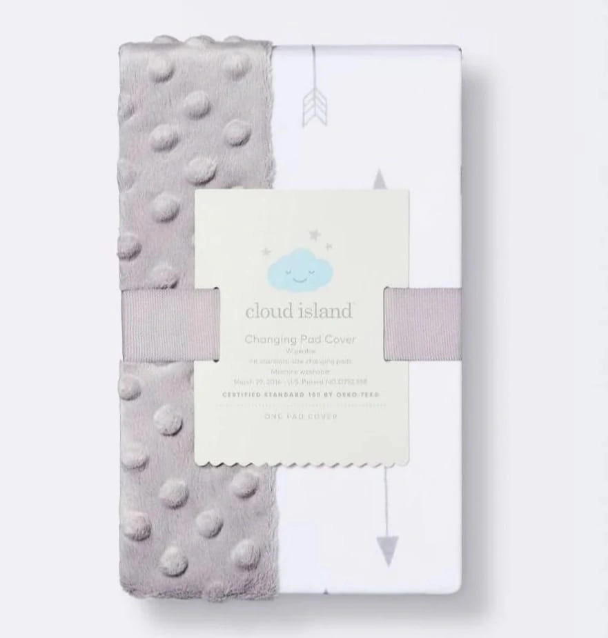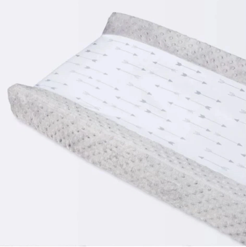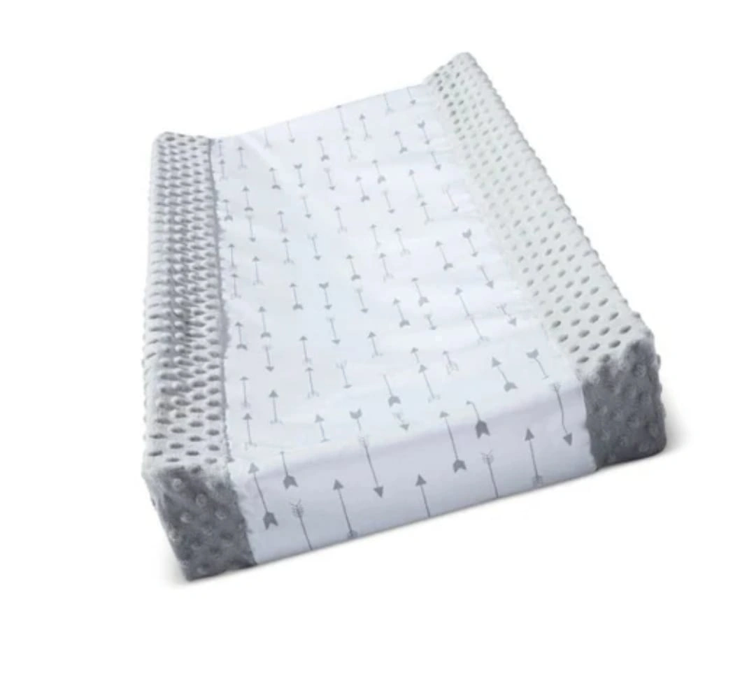 Changing pad cover, white with grey arrows. Grey and white quilted fabric.