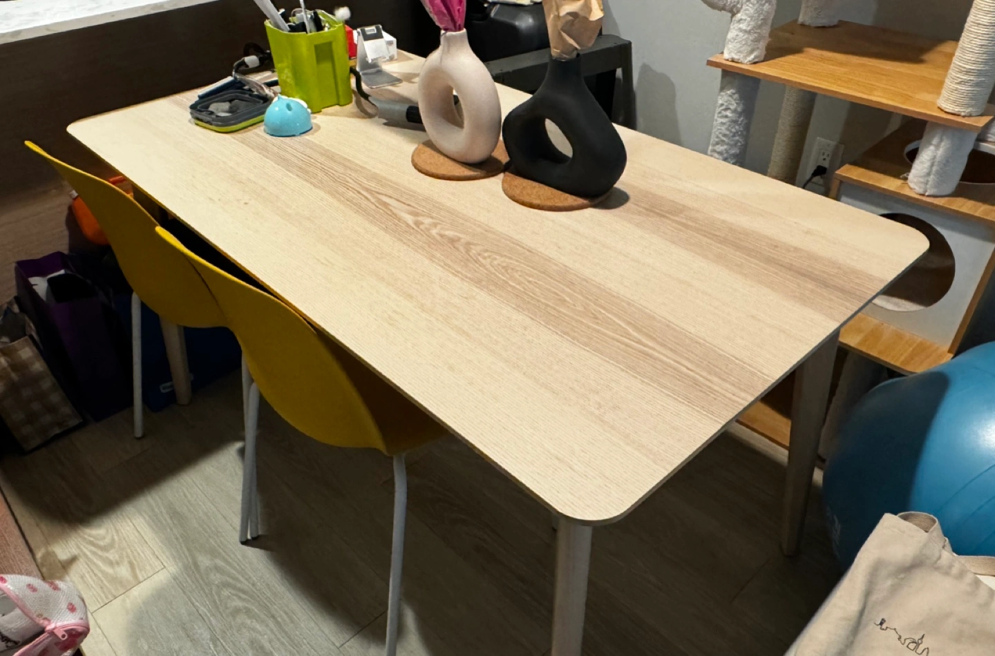 Originally 249+ tax! Not very used at home so decided to sell. Pick up only. Sits 4+ comfortably. Easy to assemble as each leg has only one screw. The table surface in ash veneer and legs in solid birch give a warm, natural feeling to your room.