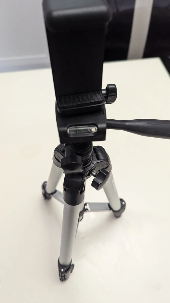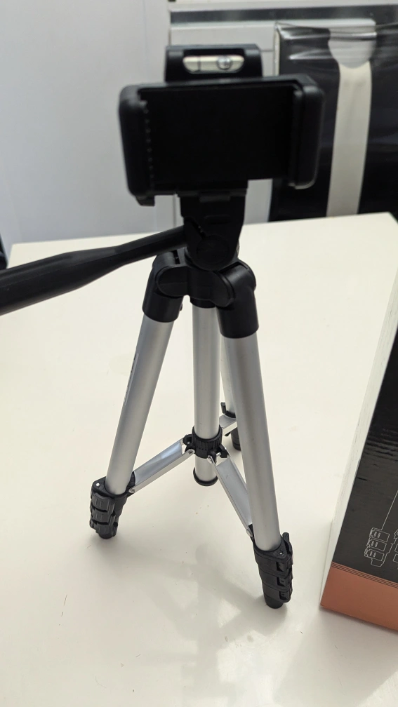 Portable tripod with a phone holder. Includes a carrying case. $20 open box new