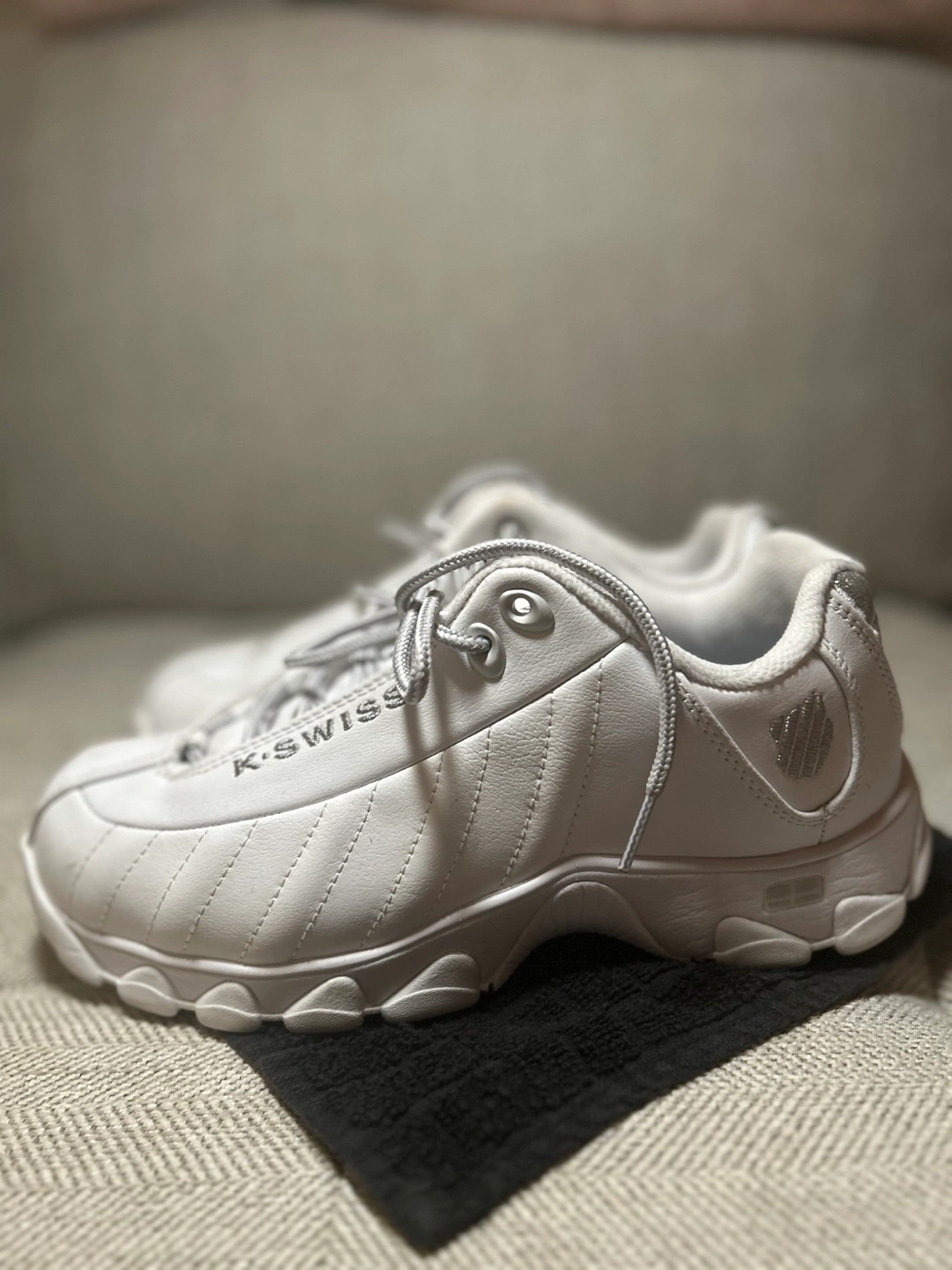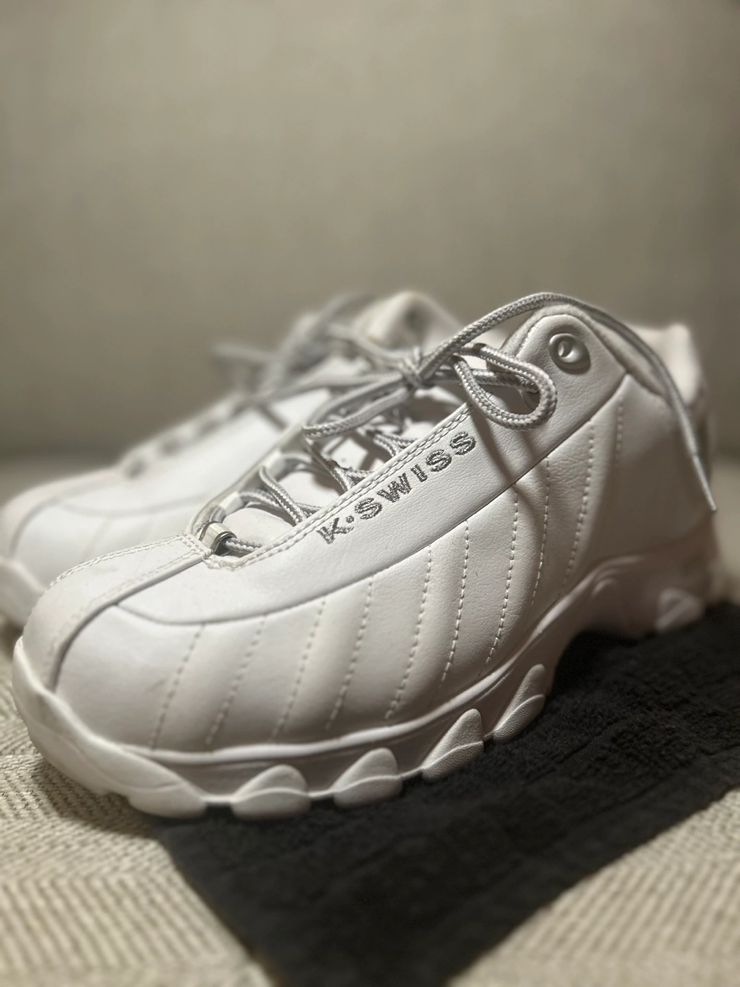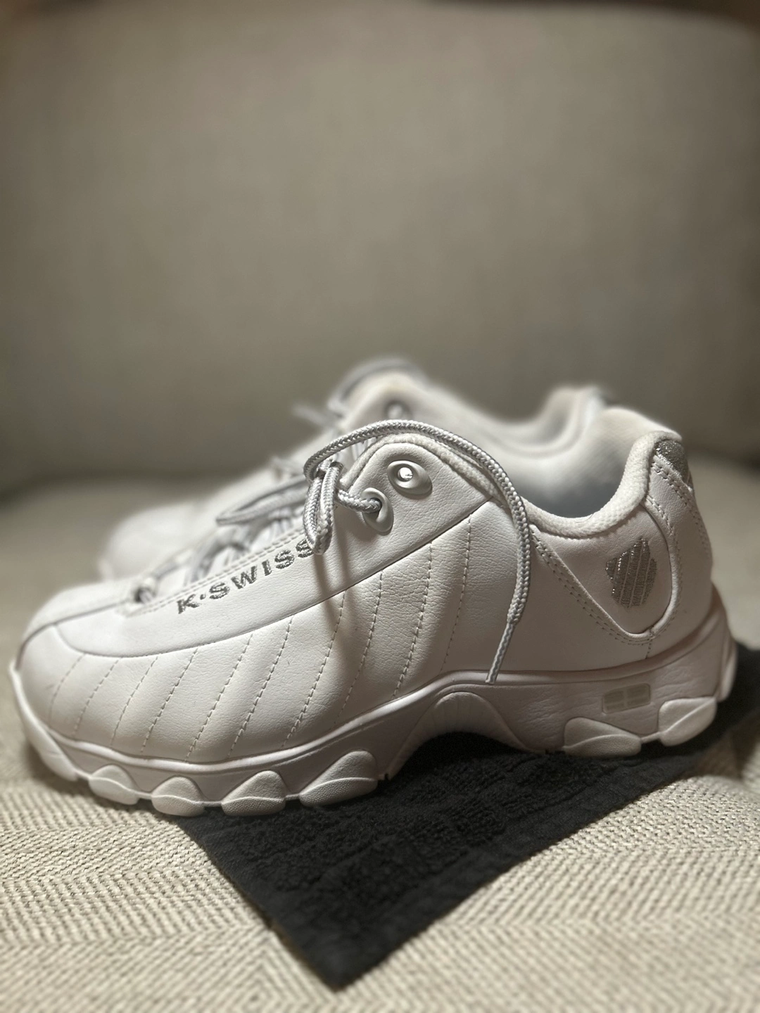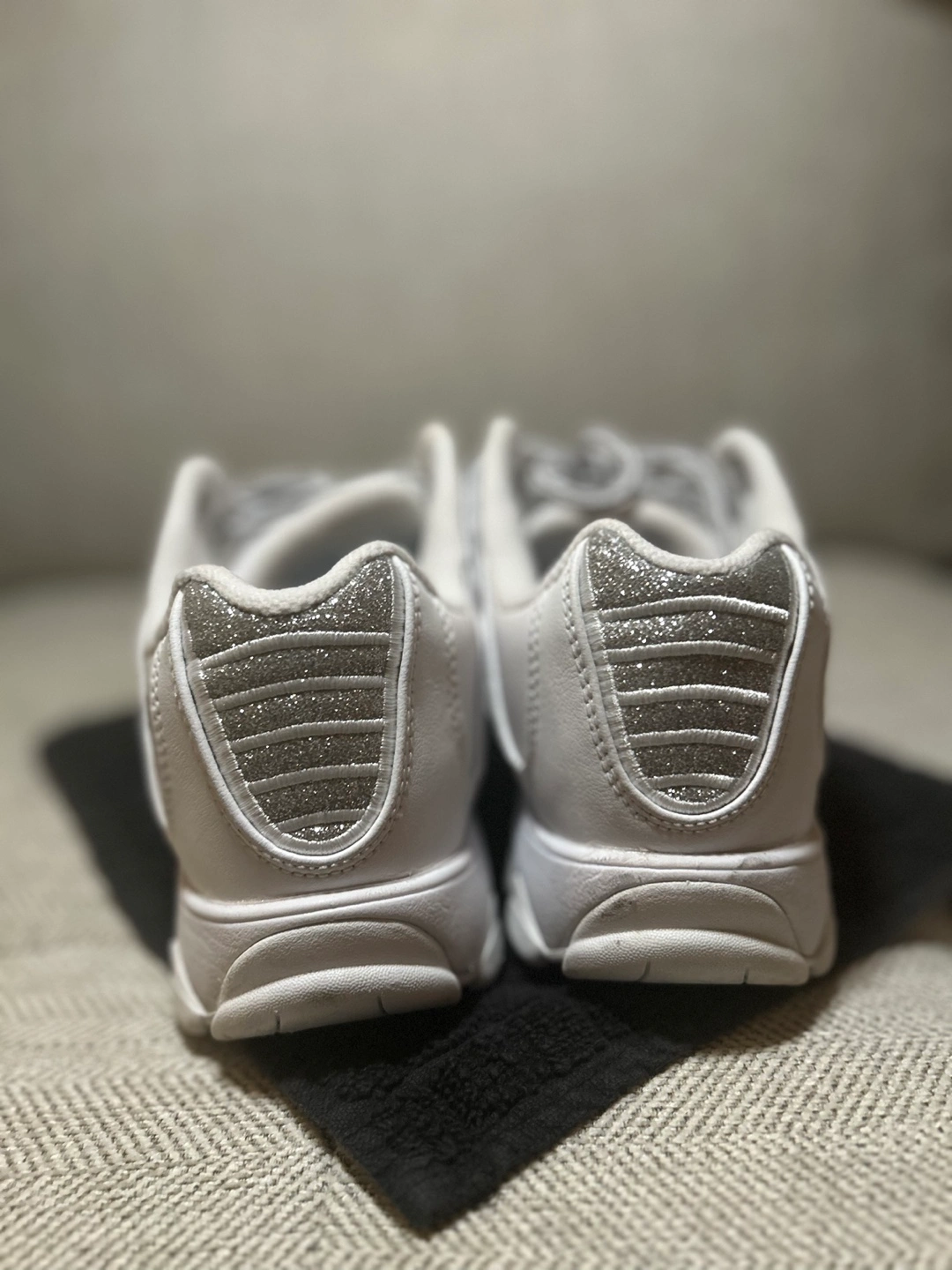White K-Swiss sneakers. Silver glitter detail and chunky sole.