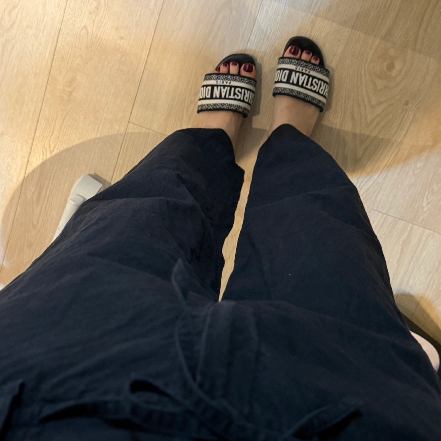 Black cargo pants with elastic waistband. Two pockets on the side very comfortable