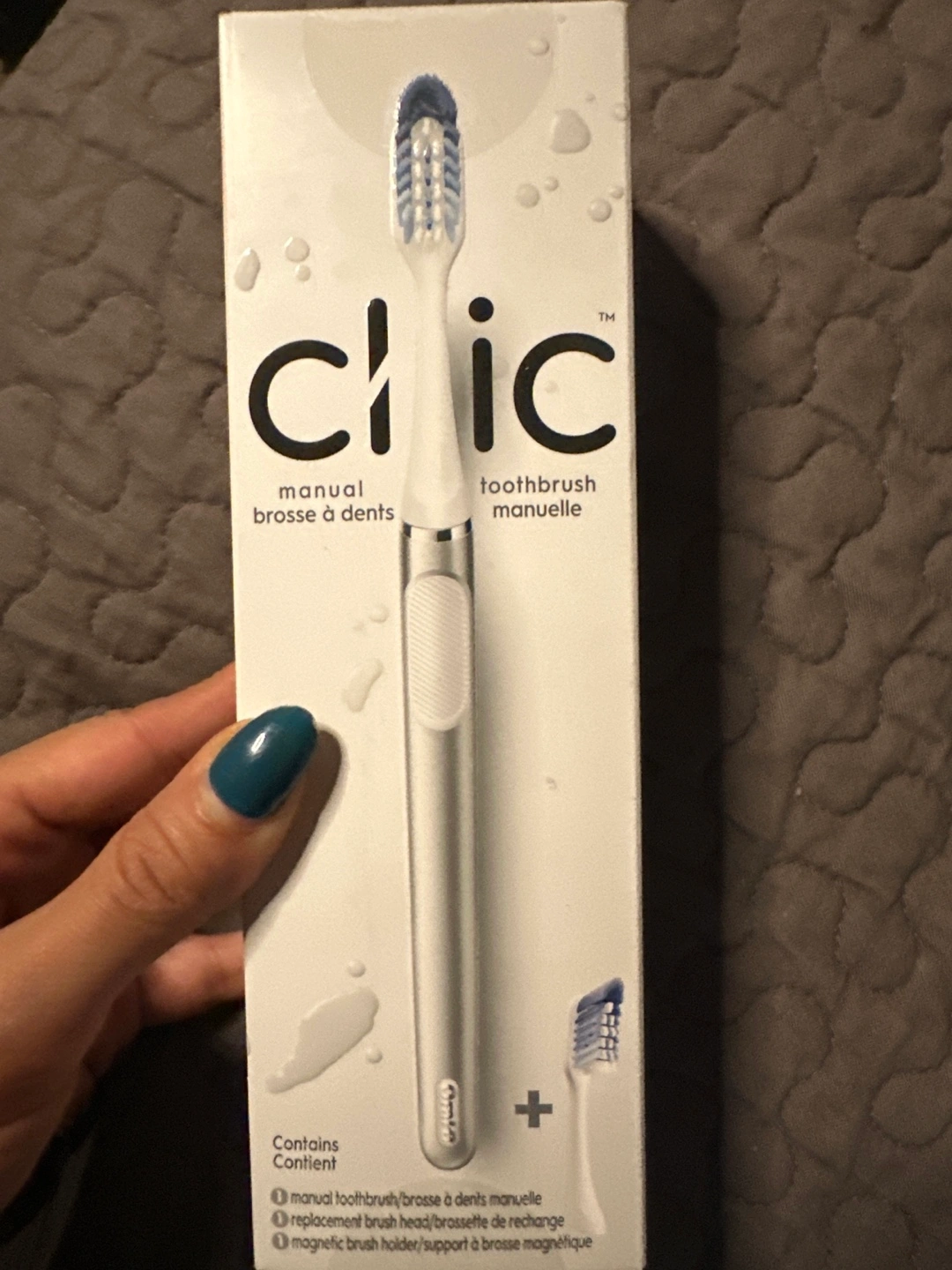 Manual toothbrush, replacement brush head and magnetic brush holder. Brand new !
