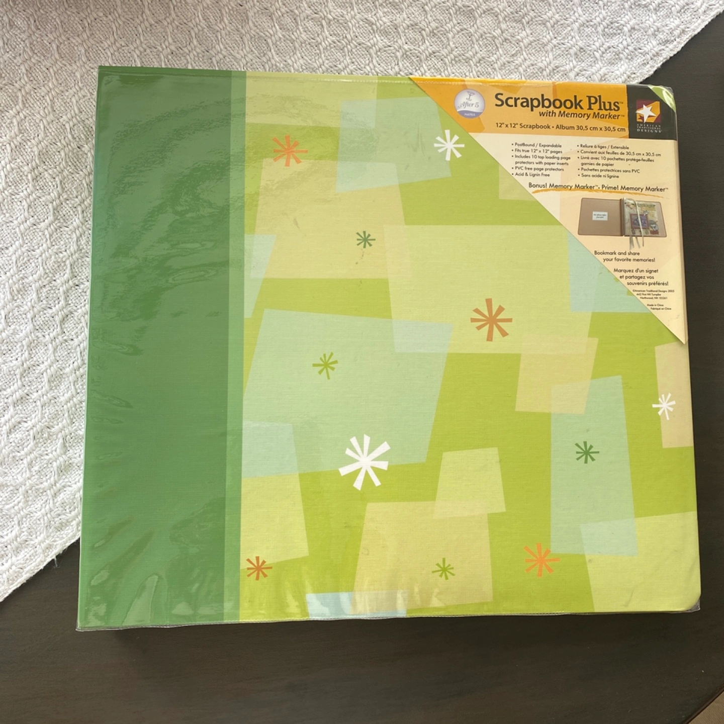 12x12 scrapbook with memory marker. Includes 14 coordinating papers, ribbon, sticker gems, and elevations. After 5 themed. Comes from smoke free home