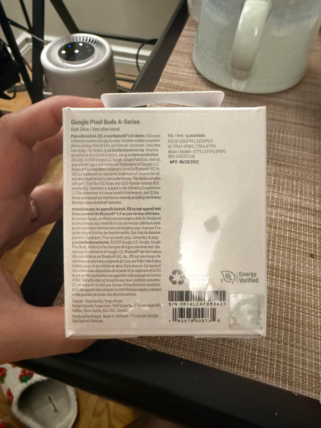 New in box. Dark Olive/Vert olive colour. Pair with Android, iOS, and Bluetooth 6.0+ devices. Full access to Google Assistant. Includes charging case.
