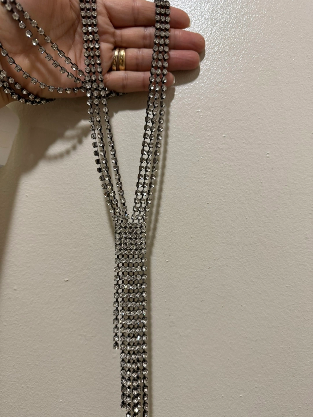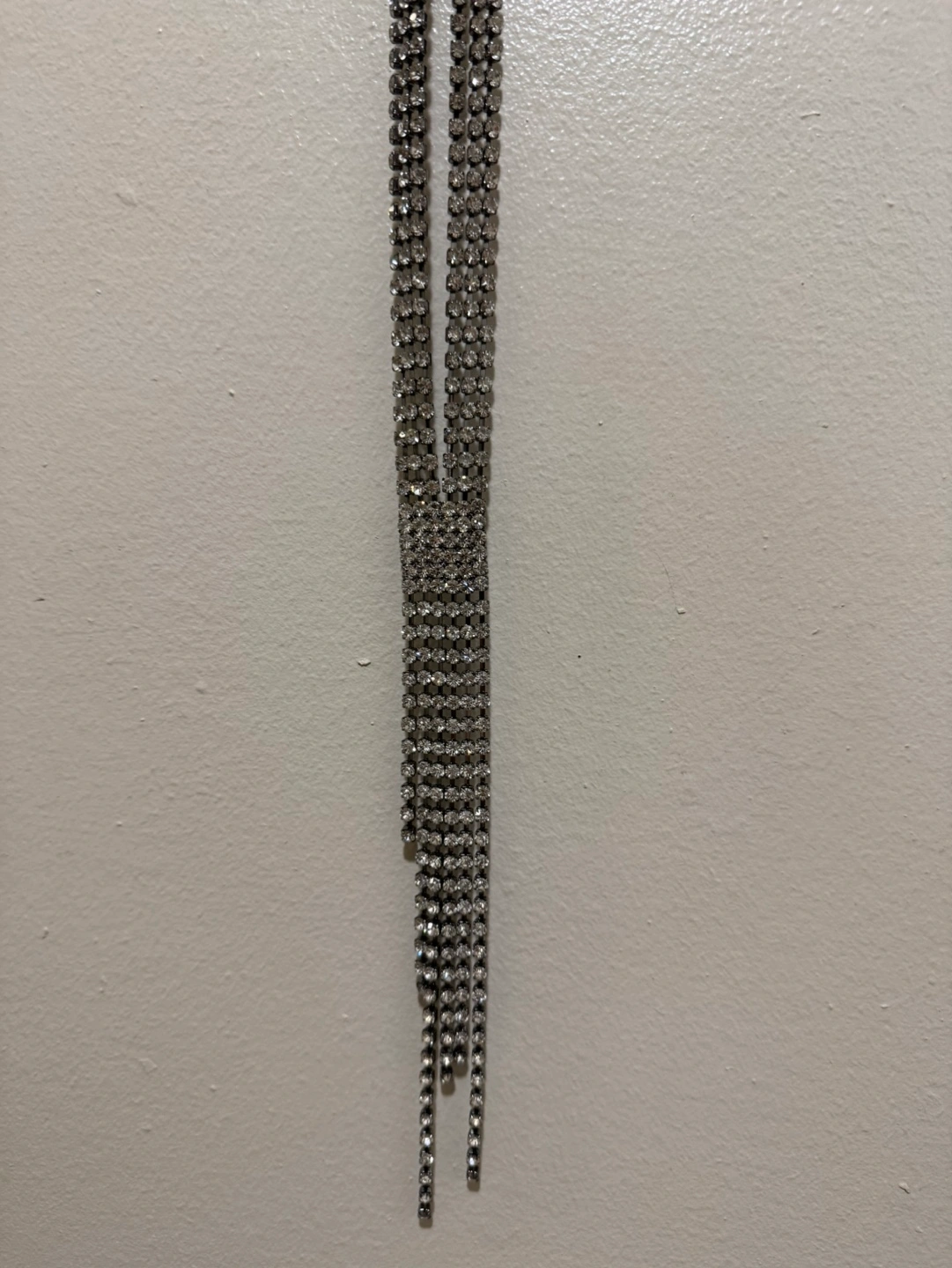 Silver tone Y-shaped necklace with rhinestones. Perfect for a special occasion or everyday wear. 23 inches Cash Pick up near Lawrence and Keele Open to Offers