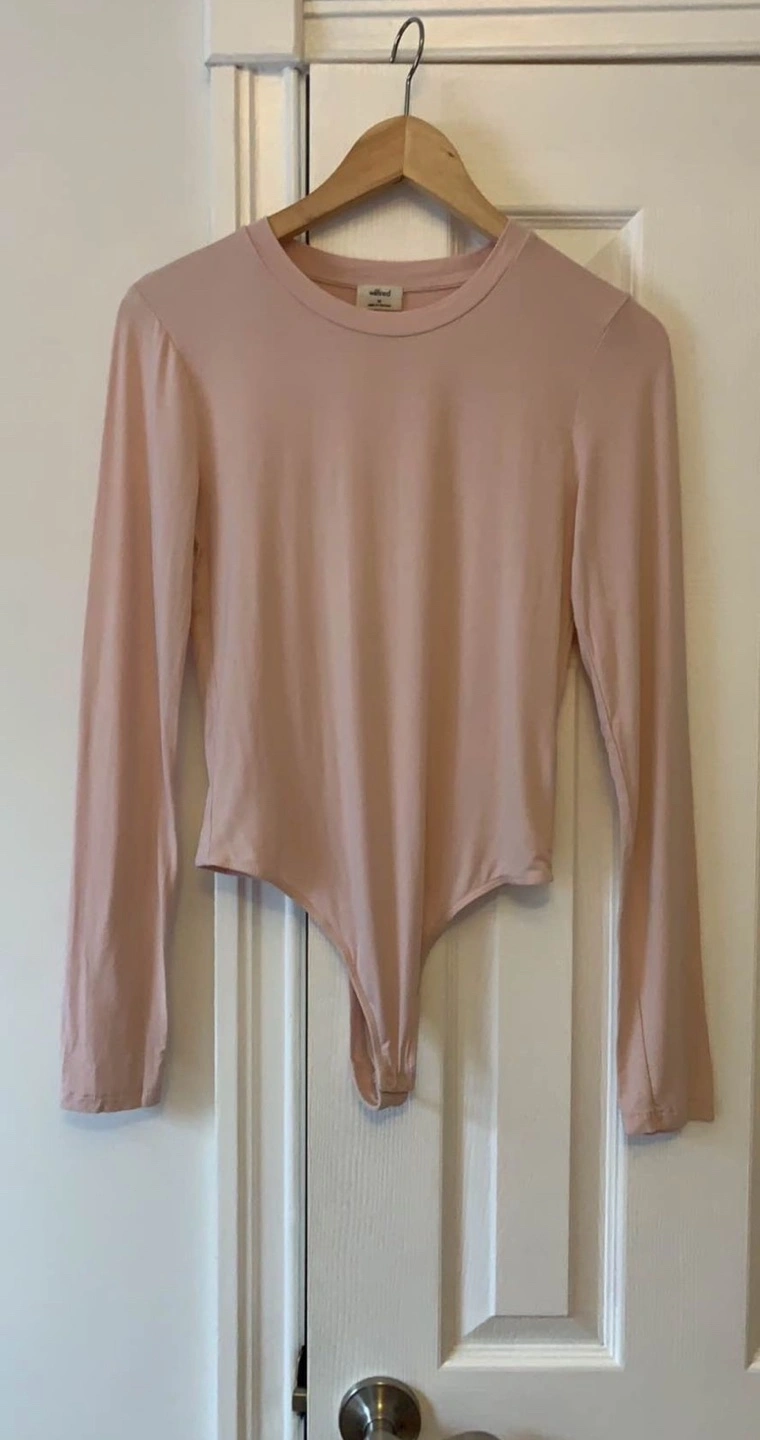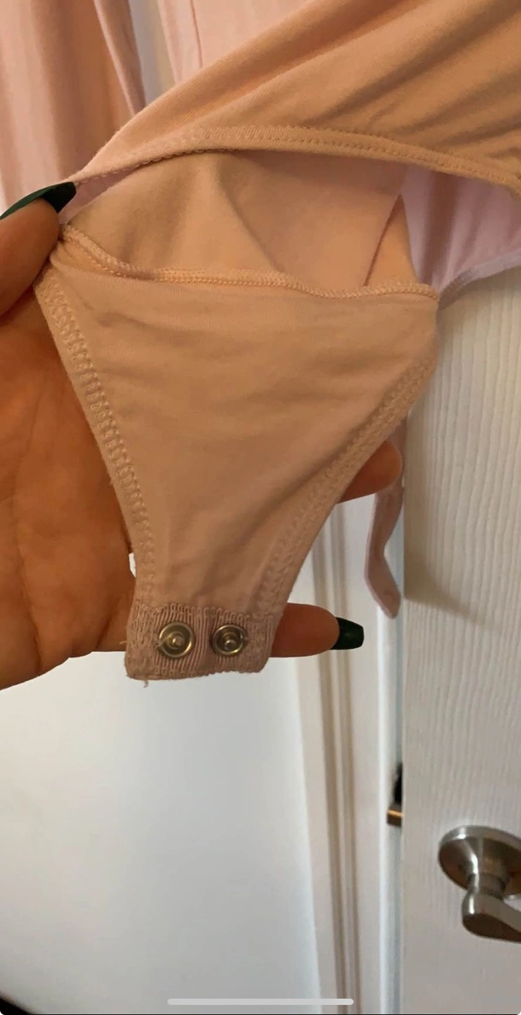 Long sleeve bodysuit. Snap gusset for easy on and off. Thong cut. Size medium