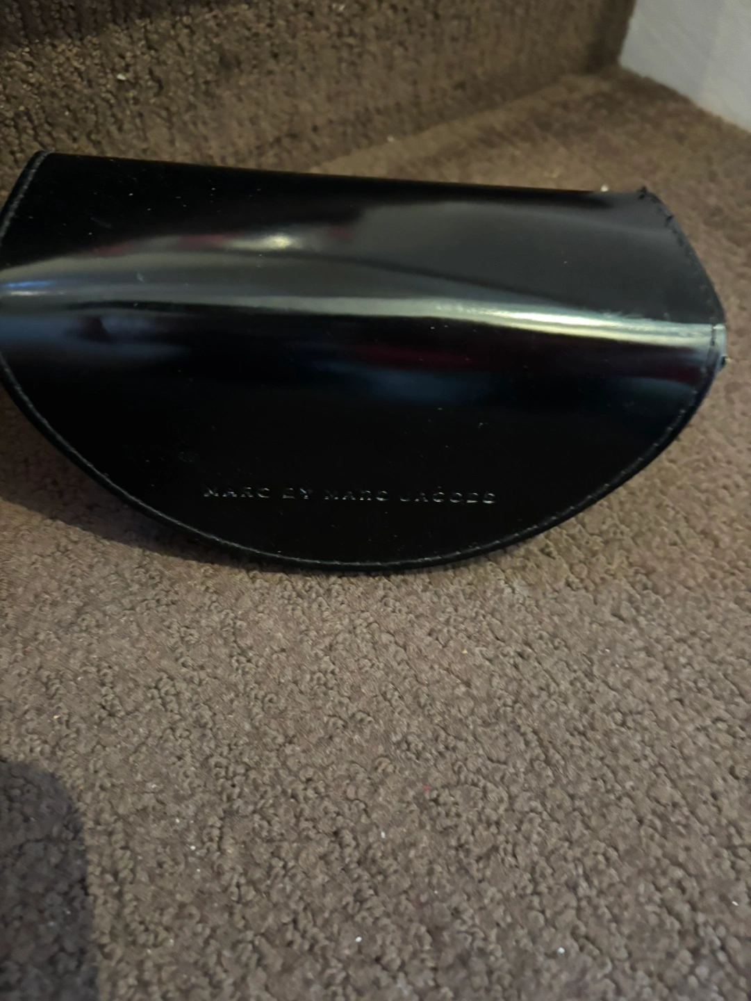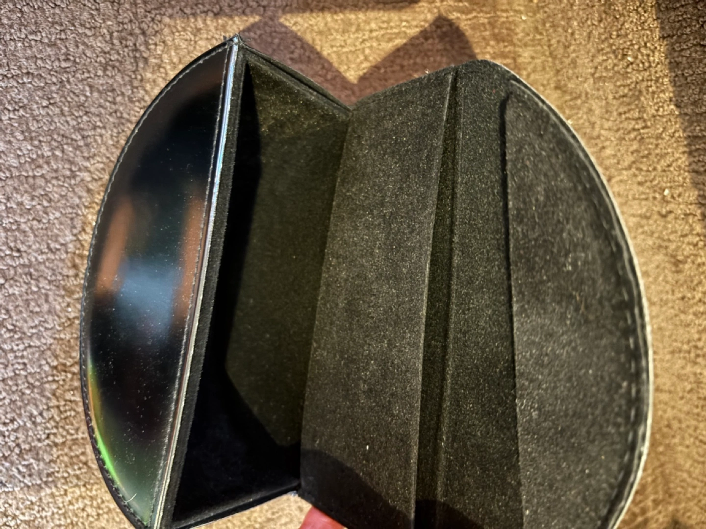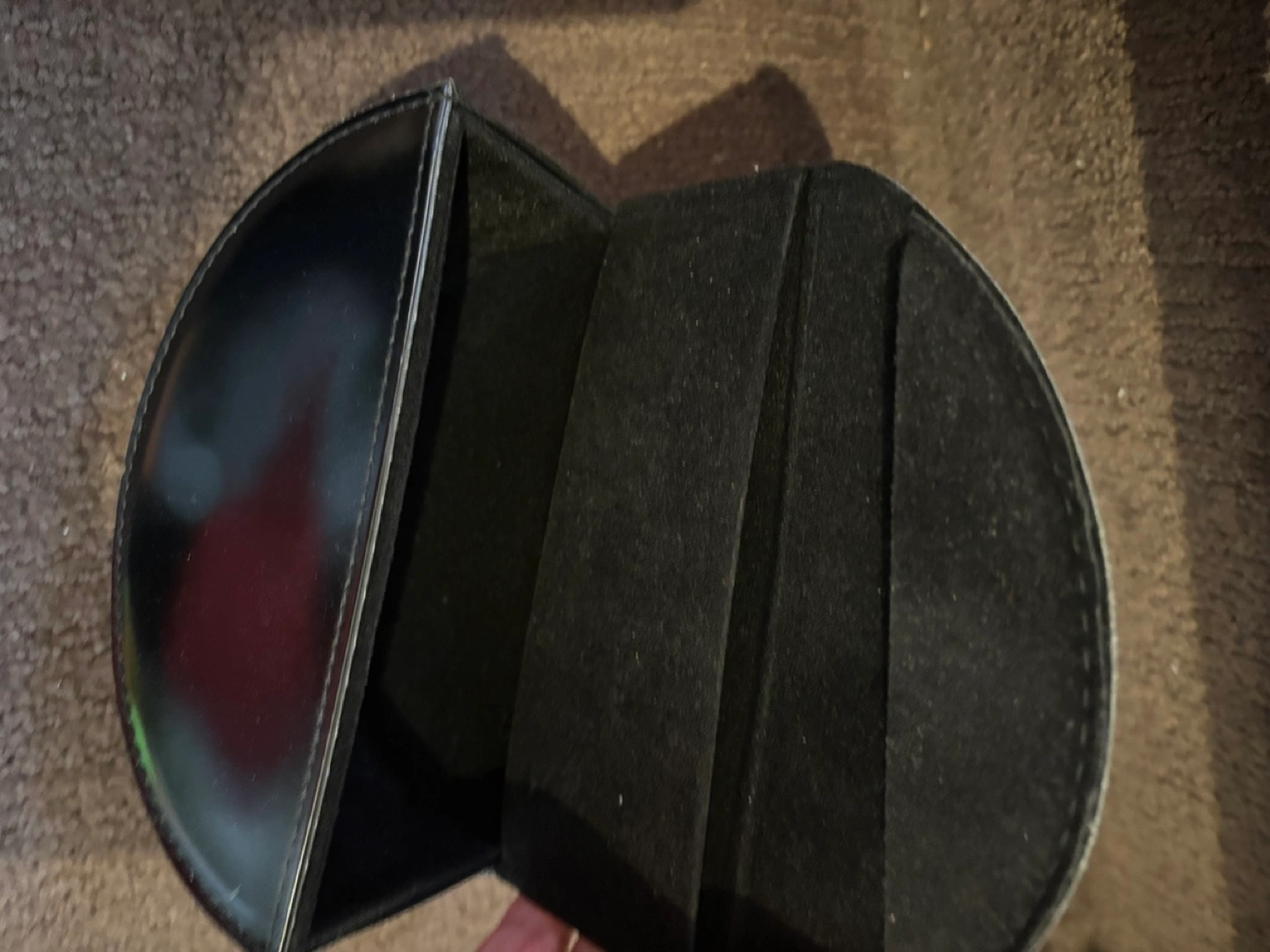 Black leather sunglasses case. Soft, black felt lining. New condition.