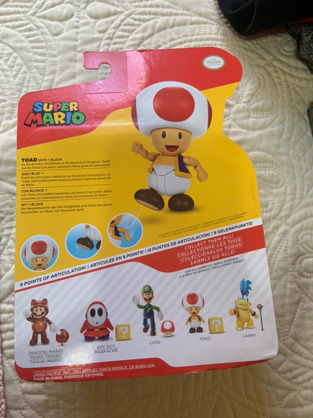 • NEW IN BOX • GREAT GIFT FOR THE HOLIDAYS • SUPER MARIO CHARACTERS • NINTENDO •’ TOAD WITH ? BLOCK ‘ • AGES 3+ • JAKKS PACIFIC • ALSO HAVE FIRE MARIO WITH FIRE FLOWER ON MY PROFILE • $25 • ALSO HAVE FIRE MARIO WITH FIRE FLOWER ( See profile ) • MAIN INTERSECTIONS ARE HURONTARIO•STEELES JUST BEFORE DOWNTOWN BRAMPTON