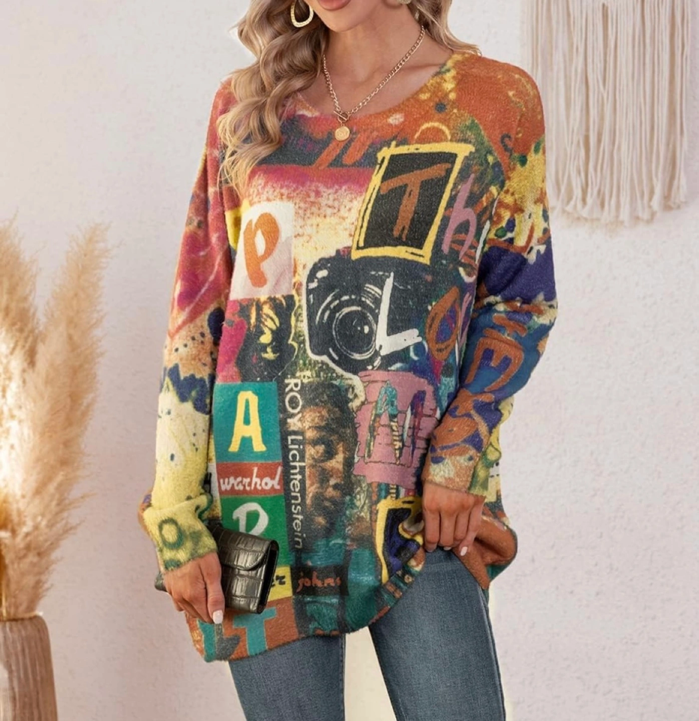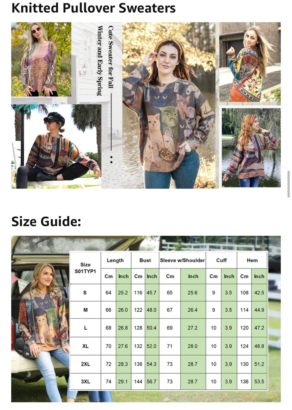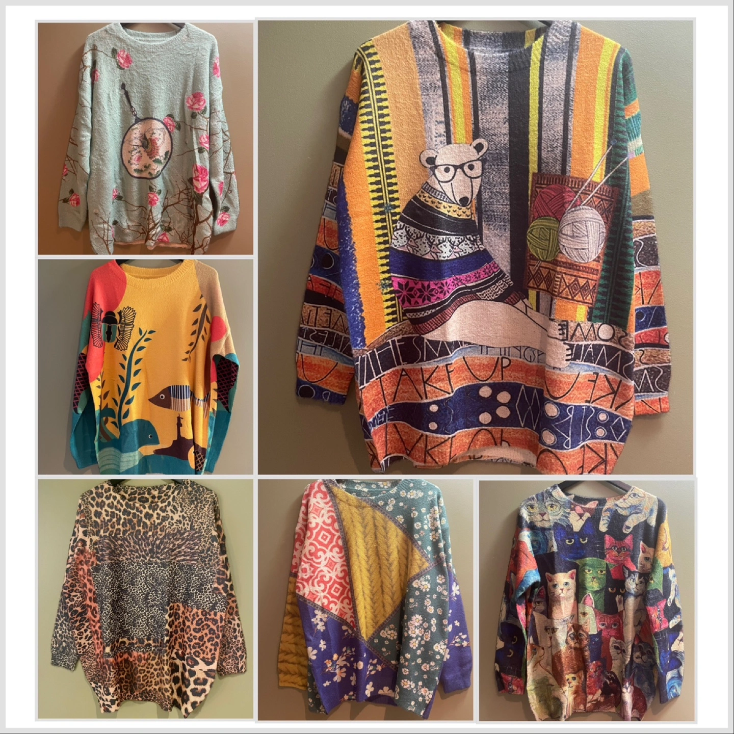 Women’s Oversized Graphic Knit Pullover Sweater with Unique pattern Featuring a classic and unique pattern with rich, vibrant colors, this sweater effortlessly showcases your style while adding brightness to chilly days. Its cozy design feels like a warm hug—perfect to wear on its own during autumn and spring or layered over a blouse or tee for extra warmth. Skin-Friendly Material: Made of a high-quality cotton and wool blend (56.3% cotton, 43.7% wool), this sweater is breathable, super soft, and cozy, offering warmth without scratchiness—perfect for all-day wear during chilly or winter days. Stylish Design: Features bold, eye-catching graphic prints. Its crewneck and drop-shoulder design ensure a relaxed, casual fit without being too baggy. Versatile Styling: Tunic-length design pairs beautifully with leggings, skinny jeans, or skirts for a chic, effortless look. Ideal for layering over a blouse or tee for extra warmth during cold weather. Occasions: Perfect for holiday festivities (Christmas, Thanksgiving, etc.), school, work, parties, or lounging at home. Its vibrant patterns and cozy fit make it a standout piece for any casual or festive occasion. Care Instructions: Hand wash cold or use gentle machine washing; Keywords: Oversized graphic Christmas sweater, casual loose fit, cozy knit pullover, holiday festival top, plus size sweater *Available sizes: S-1, L, XL, 2XL, 3XL *Pickup Locations: Markham Road & 14th Avenue, Markham, or 500 Esna Park Dr, Markham. *Shipping available with an extra fee. *Thank you for your interest in these items. Please also have a look at my other items on sale.