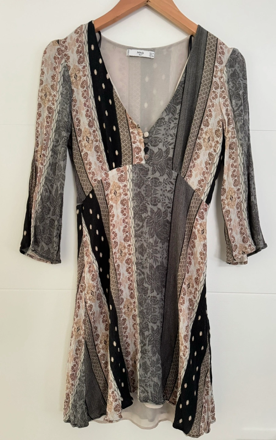 In great condition! Comfortable and flattering bohemian style dress from mango. 3/4 sleeves, wrinkle resistant and lined with a hidden zipper on right side. Price is firm, cash only please. Pickup downtown Toronto/Jarvis & Gerrard/Yonge & Dundas or we can arrange to meet along TTC line 1.