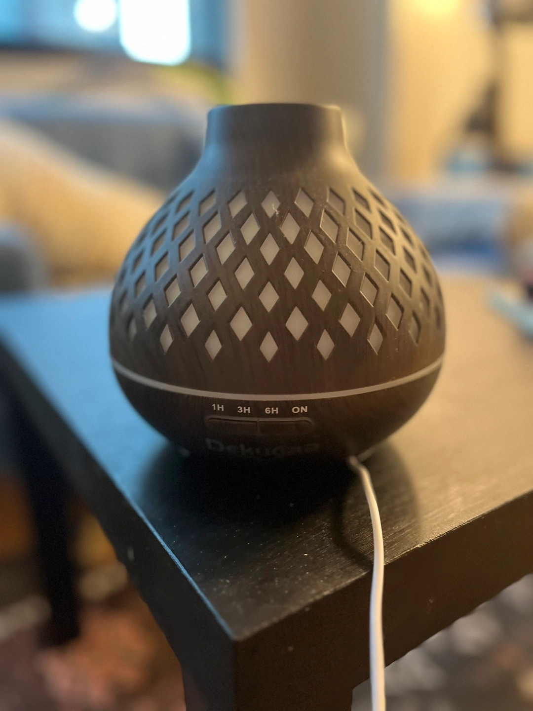 Diffuser with 1H, 3H, 6H, and ON settings. Features an optional LED light with multiple color settings.