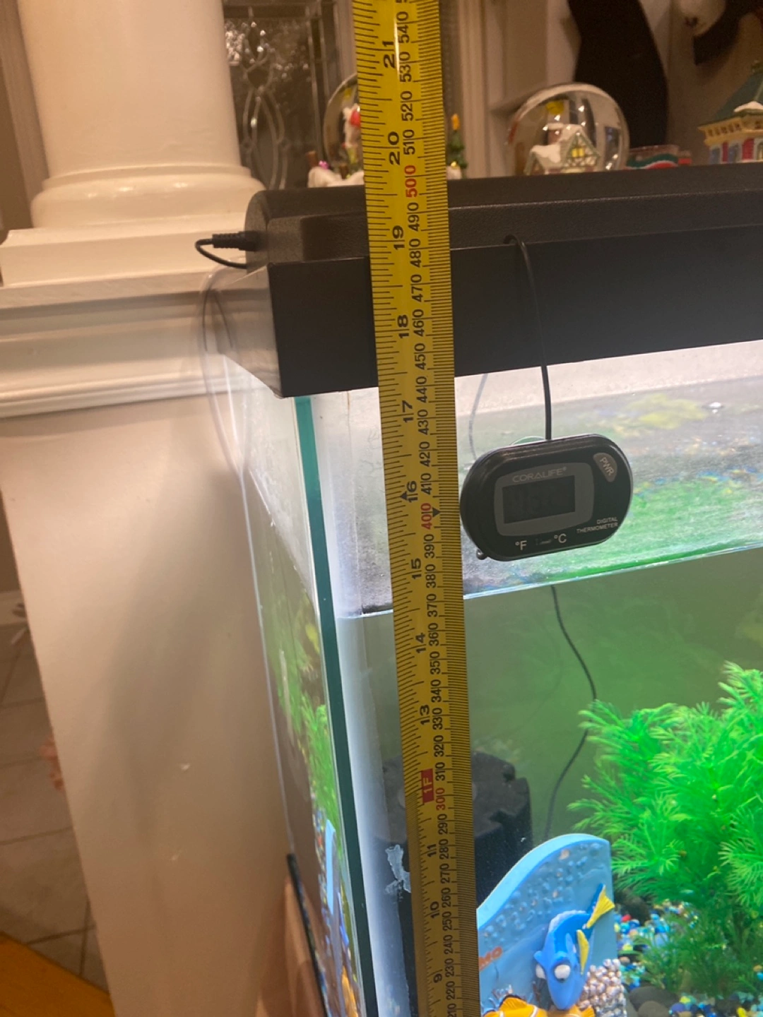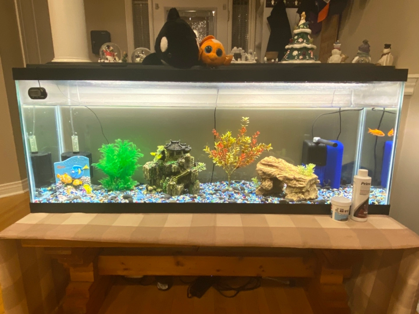 Fish tank, 48 inches long, with lights and a built-in thermometer. All accessories included inside the fish tank.