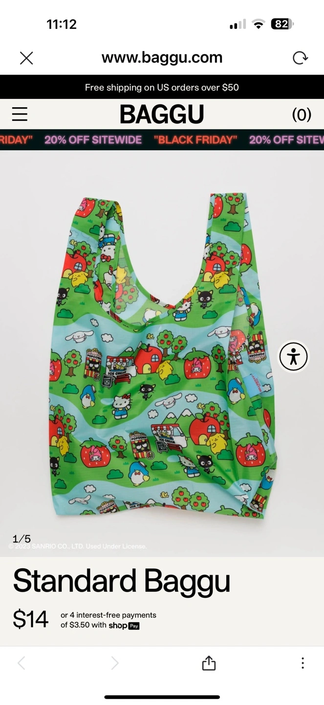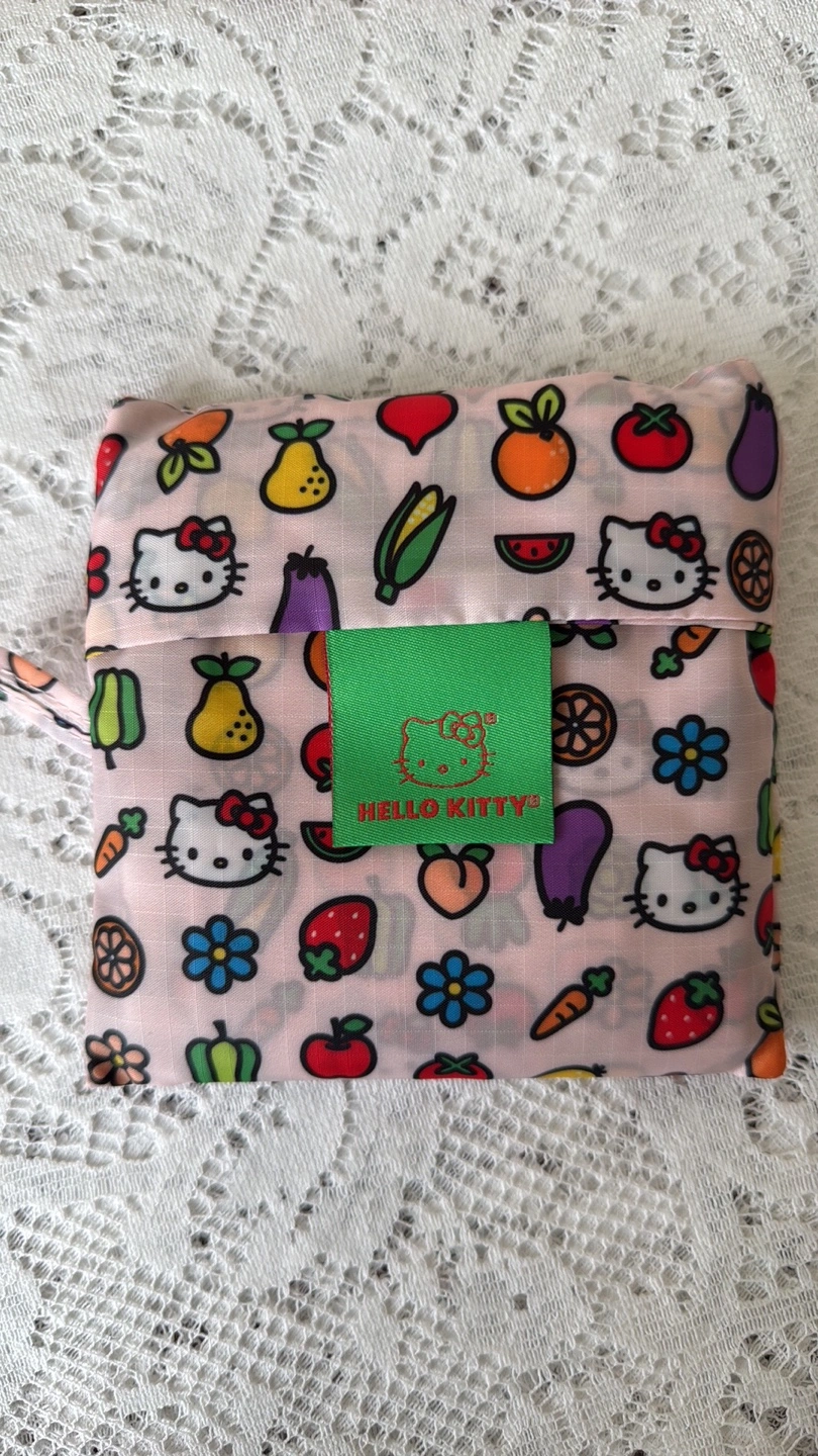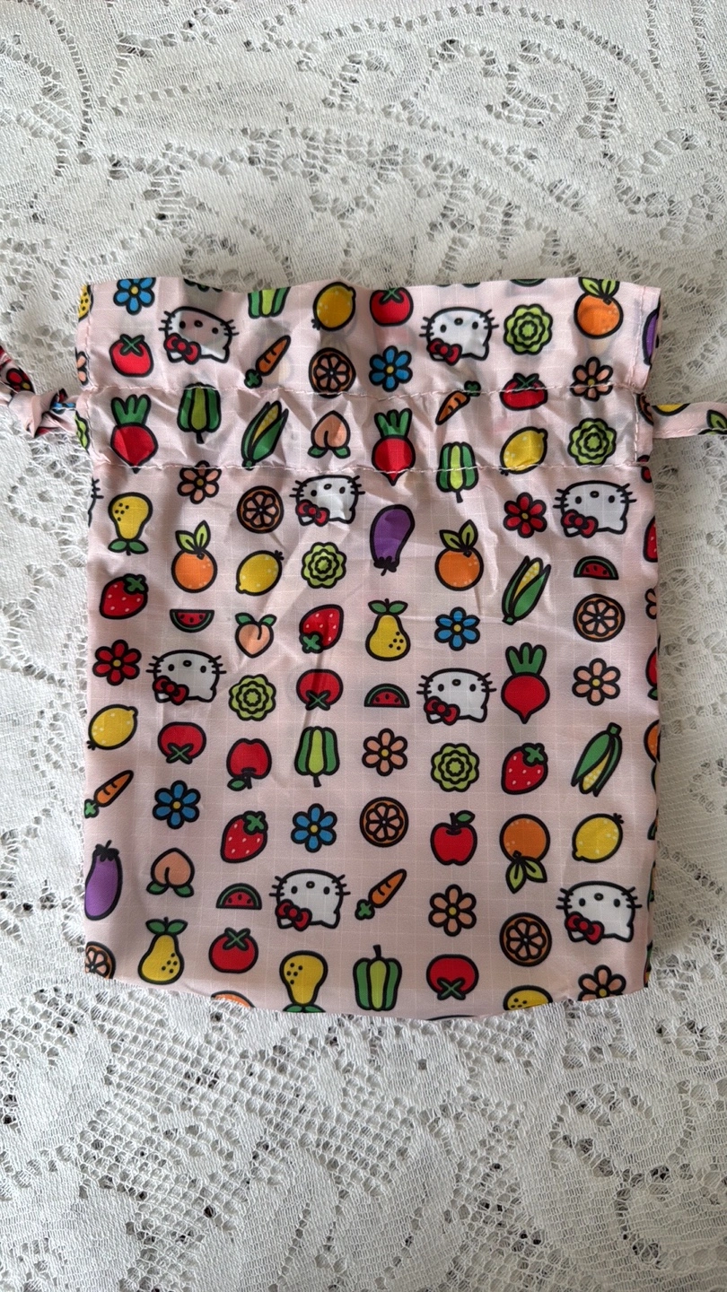 HELLO KITTY & FRIENDS REUSABLE BAG: πππ½ππ ***In a very attractive Fruits & Vegetables design!!! ***A great gift idea!! β’β’β’PICKUP LOCATIONβ’β’β’ Scarborough Town Centre Mall only, evenings.. ***(3 PIECE SET): 1)Reusable bag (Standard size)/ never been used so itβs still folded in the pouch!! 2)Mini pouch to put in the Folded bag 3)Mini drawstring bag (pic#5) to store the 2 items indicated above βοΈfor easy storage ***Absolutely brand-new. Received it as a gift, in original packaging ***A versatile bag for groceries etc. ***RETAIL VALUE: $14.00 Before tax/ selling at a reasonable $9.00 fixed price ***Machine washable https://www.baggu.com/products/standard-baggu-hello-kitty-and-friends-scene ALSO SELLING: More Hello Kitty items, please see listing
