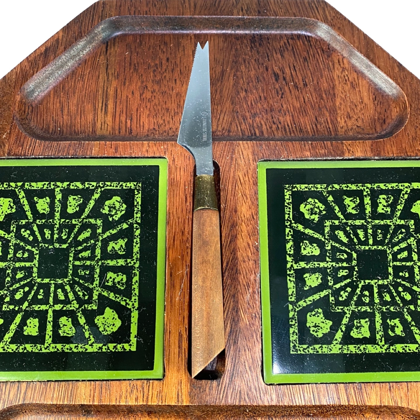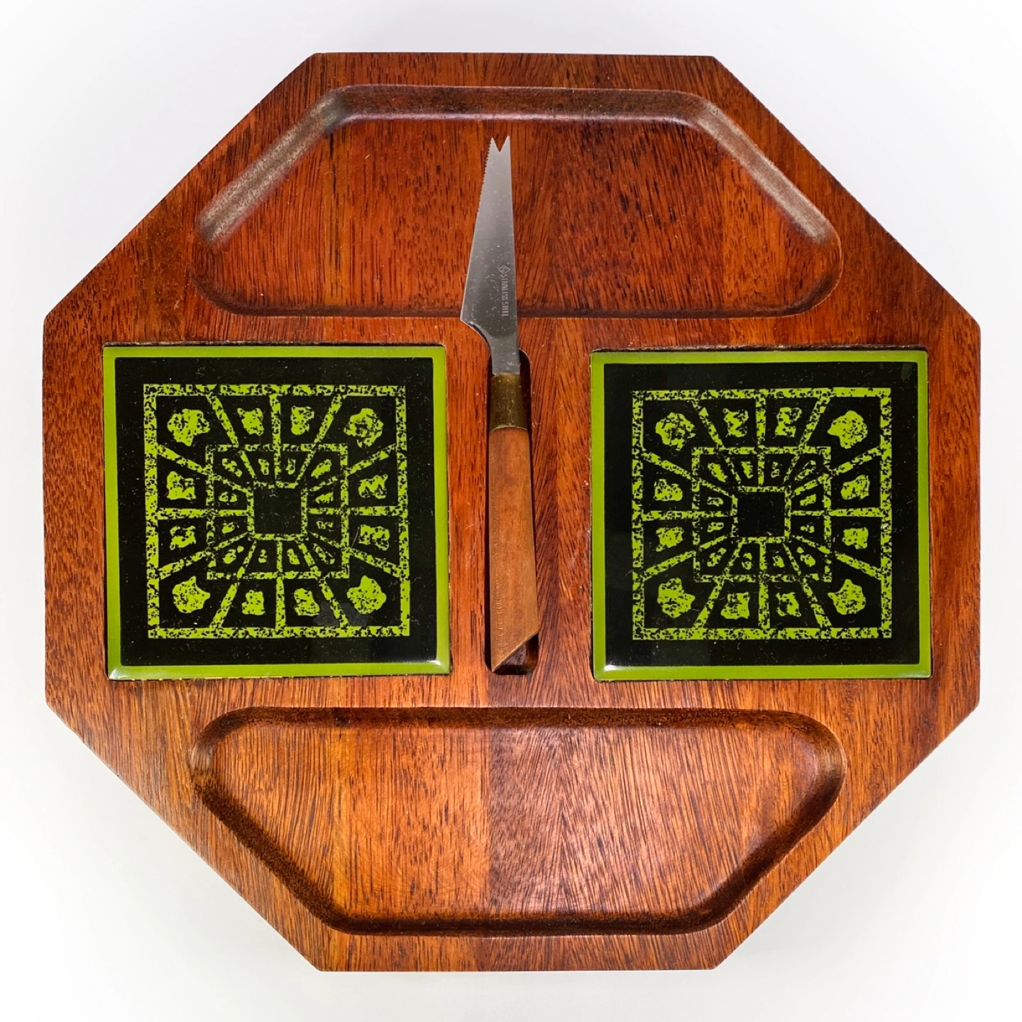 Imperial optic tile and hardwood cheeseboard with knife, made in Japan. 12x12โ ๐ฅ$12 โ Yes, it is available ๐ Pick up near Bloor & Ossington ๐ Downtown delivery extra ๐ฆ Ask about shipping