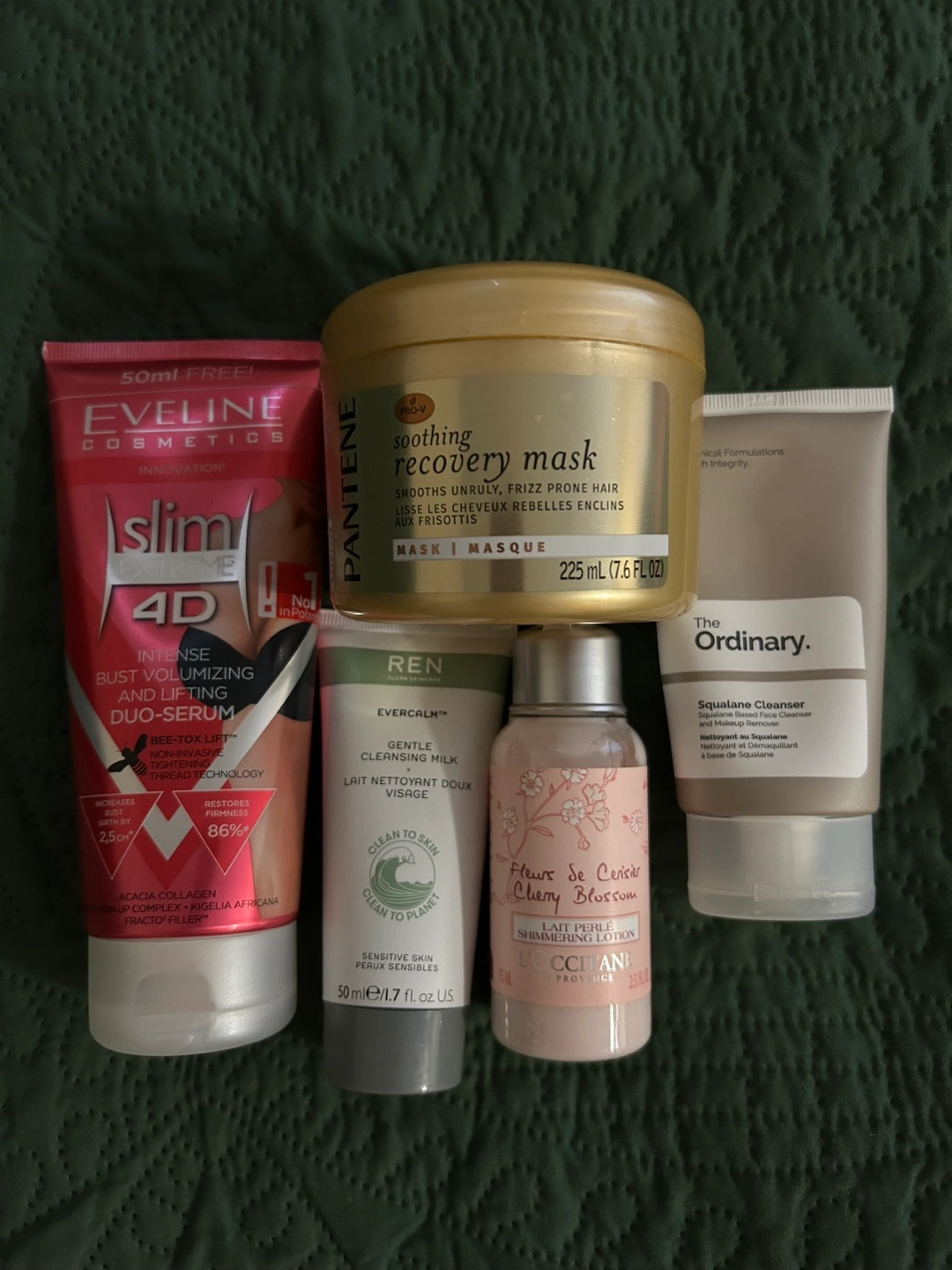 Cosmetic bundle 1. Bust volumizing - new 2. Pantene recovery mask-half left 3. Ordinary face wash-20% left 4. REN cleansing milk-20% left 5. Loccitane body cream-90% left