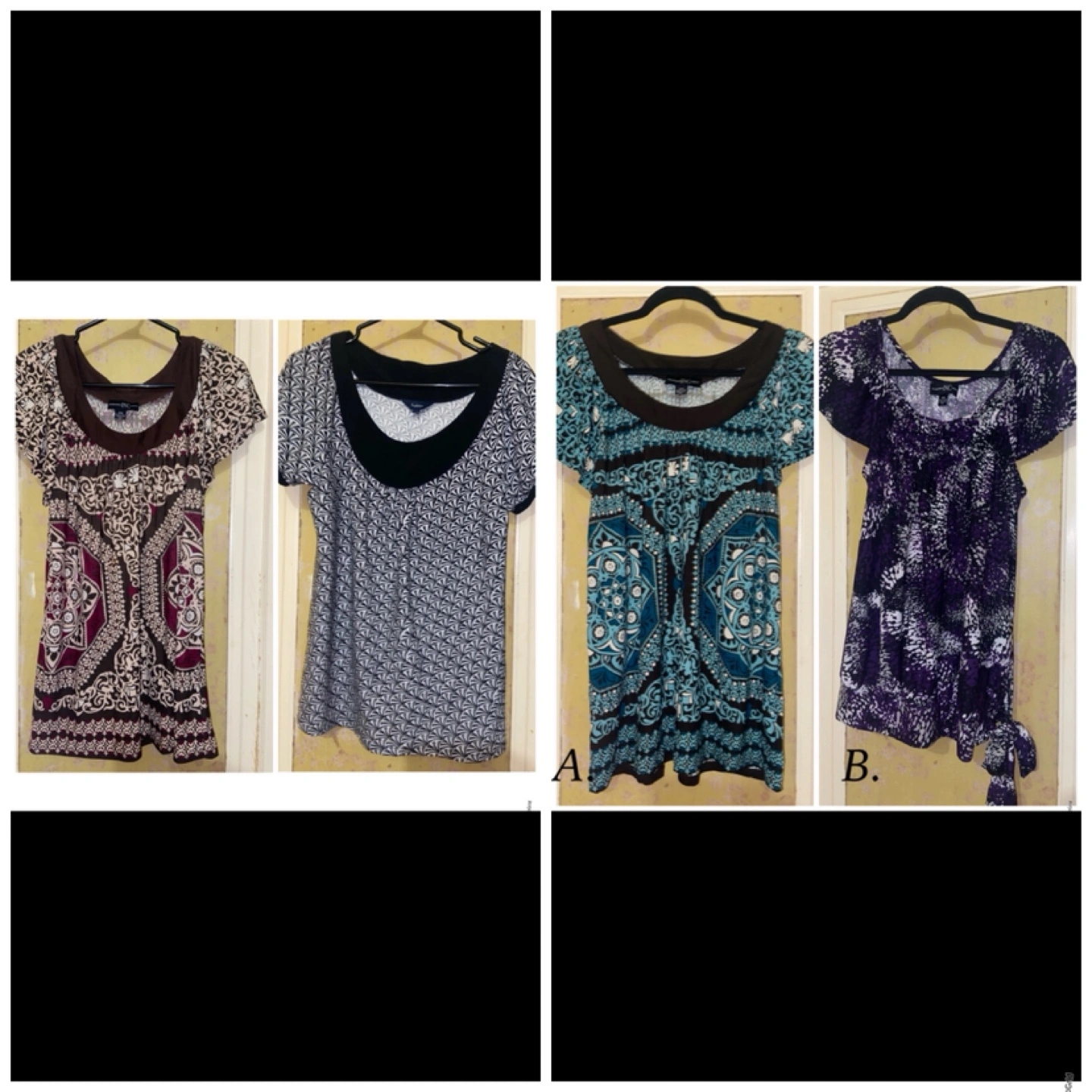 Women’s tops size Medium Condition- Brand new no tags I’m very good condition. No wear or tear. No stains Size- medium Colour A. Material- 92% polyester/ 8% spandex B. Material- 95% polyester/ 5% spandex Condition- has been worn I’m very good condition. No wear or tear. No stains Size- medium Colour A. Turquoise B. Purple Material- 92% polyester/ 8% spandex Cash Payment No Refunds / Exchange No try ons, No trading No holds. All purchases are Finally Sale From a Smoke Free home First come, First Serve Fast pick up Price-$5 for each Pick up- In East York, Toronto Ttc station Coxwell ave subway station