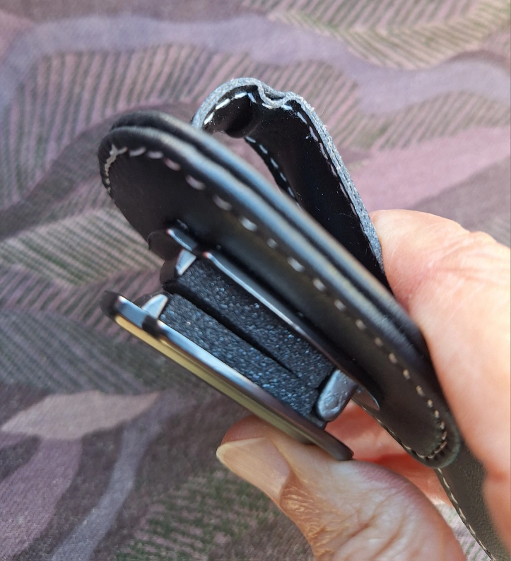 Leather belt clip with metal clip. Black leather with silver accents. Proceeds to cat rescue, Kit Cat Club Of Hamilton Upper Wentworth and Queensdale area Hamilton mountain