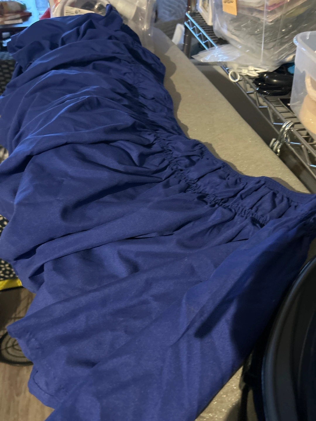 Fitted bed skirt, blue, queen size Hide all your stuff under the bed.