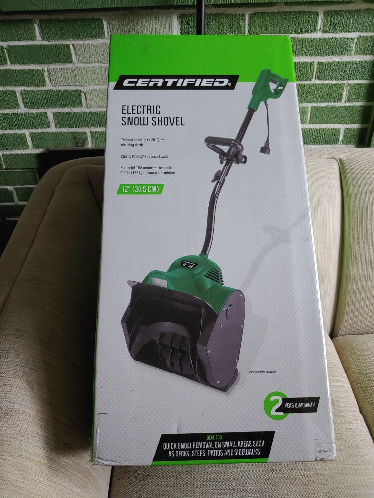 Brand New Sealed in Original Box 10-amp corded electric snow shovel. 12 inches wide. Ideal for quick snow removal on areas, such as decks, steps, patios, sidewalks and driveways.