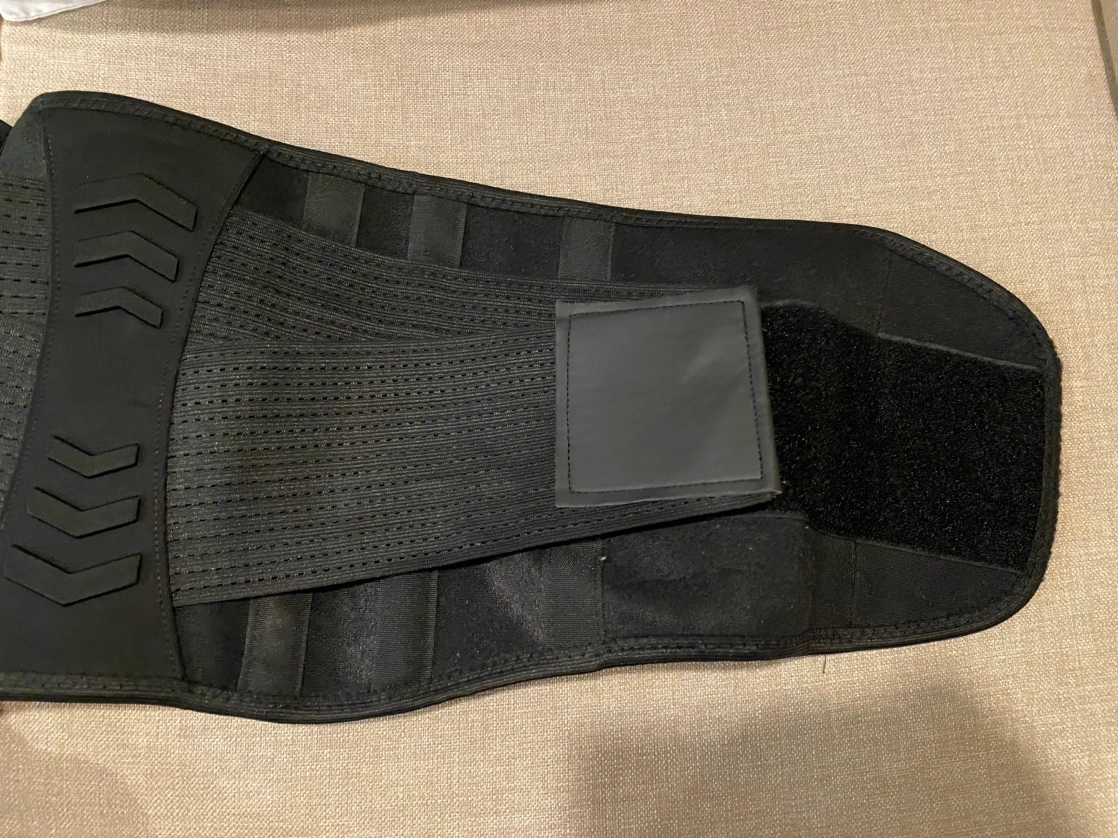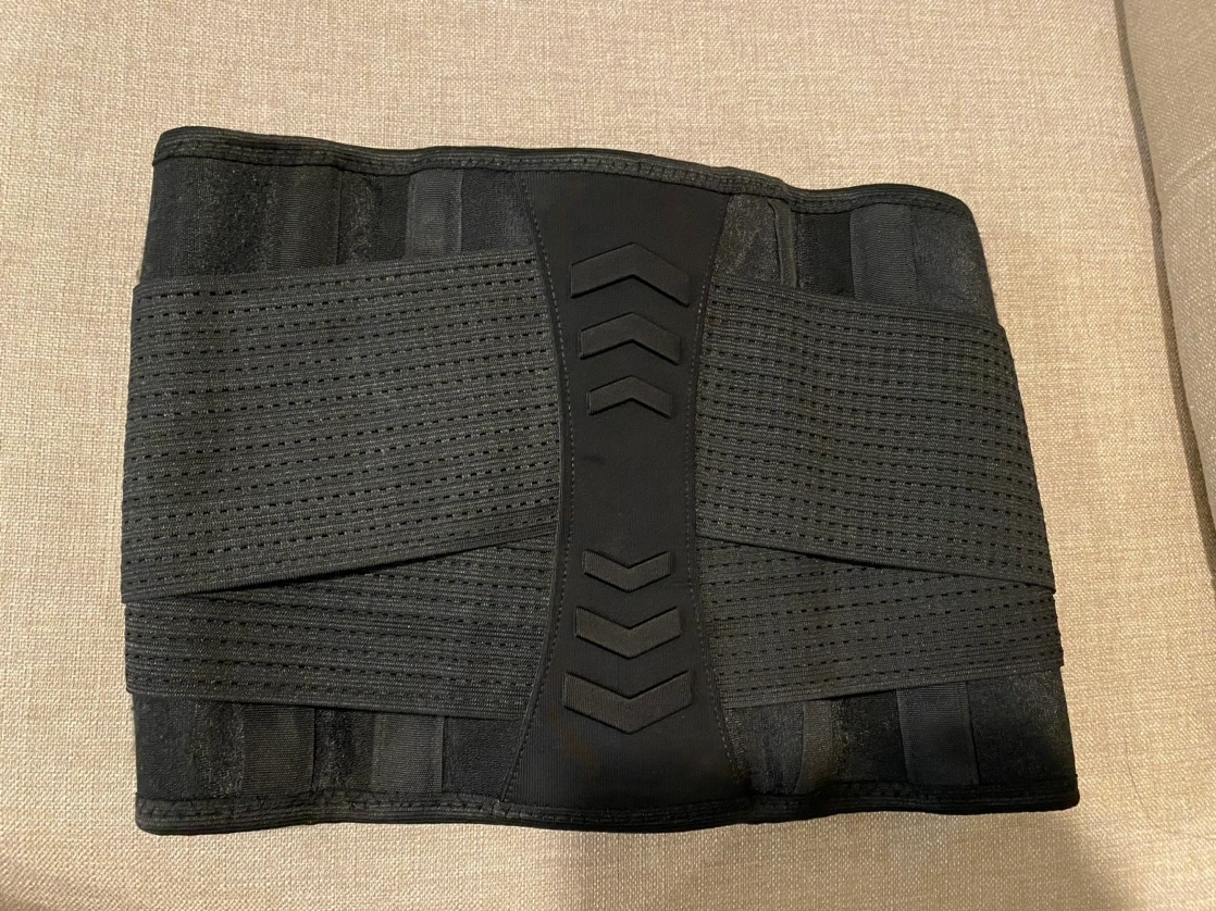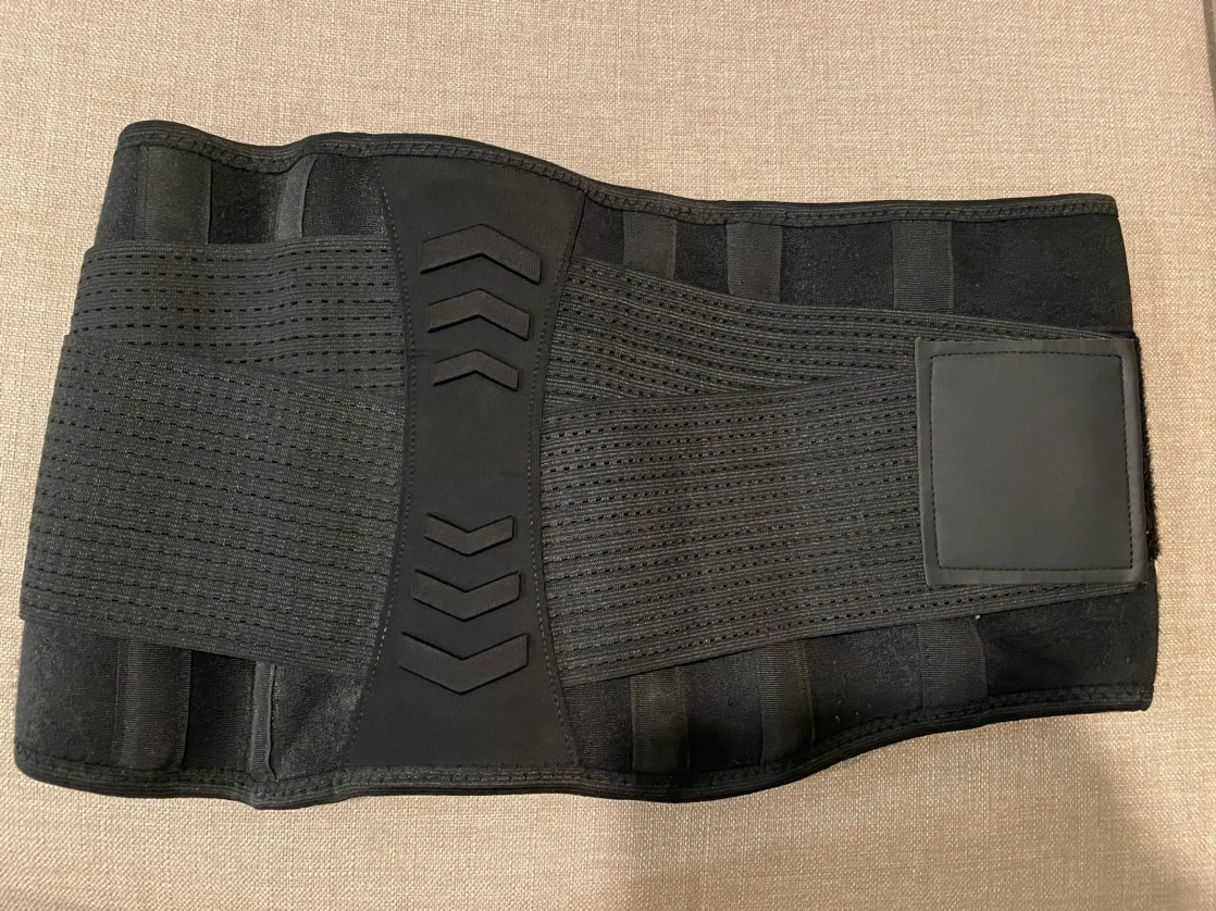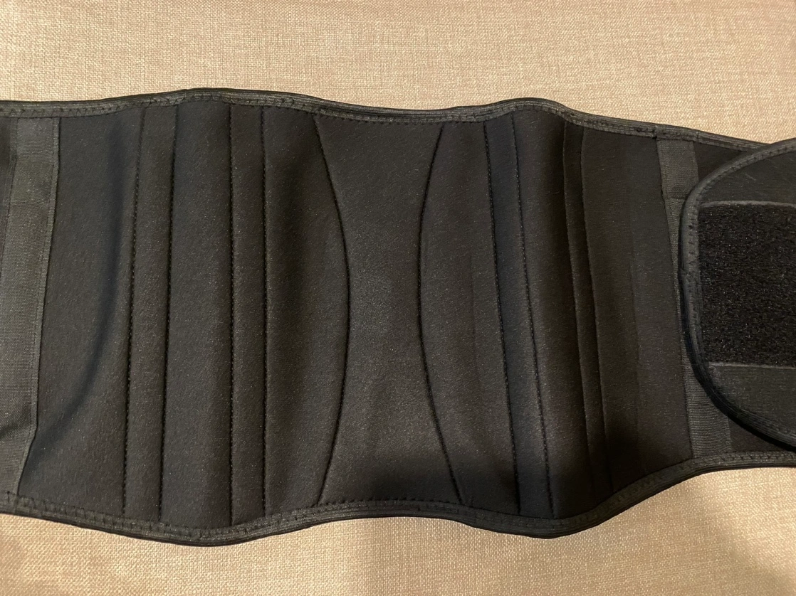 Stylish black back support/waist trimmer belt with adjustable velcro closure. Provides lower back support. Size: S-M (28-35 inch, 70-90 cm) Tried just few times