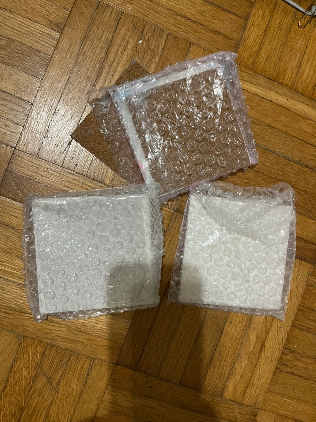 These are coasters 2 of which I painted with paint markers I never finished or polished them off one of them isn’t decorated. Basically new could use for crafting
