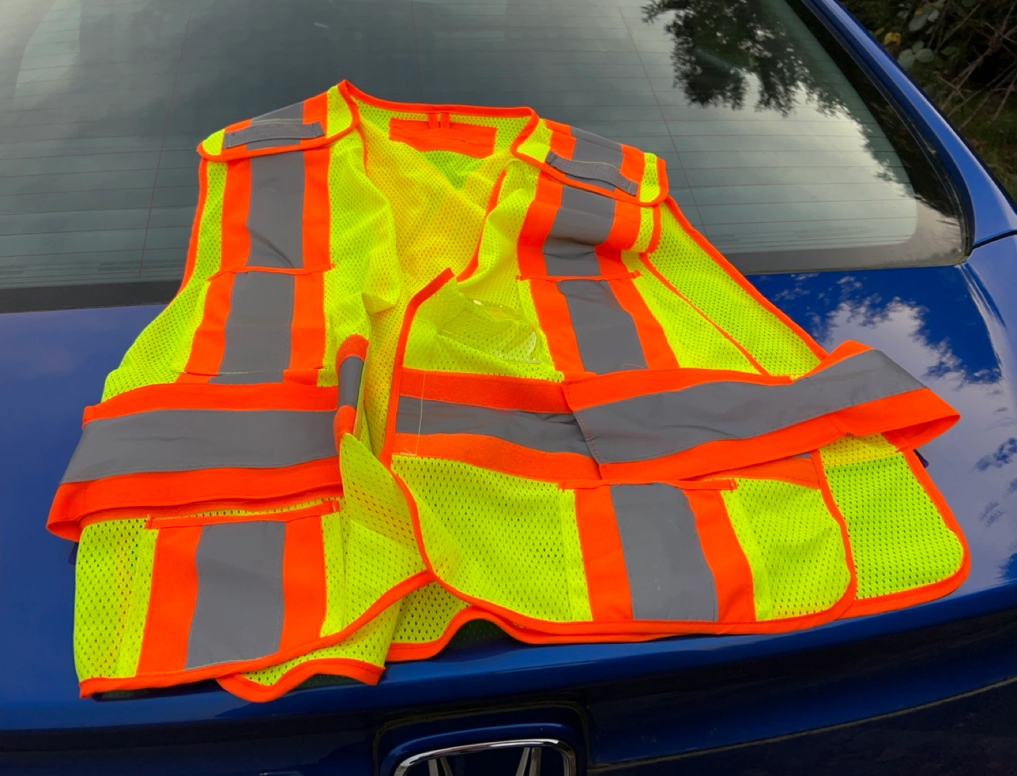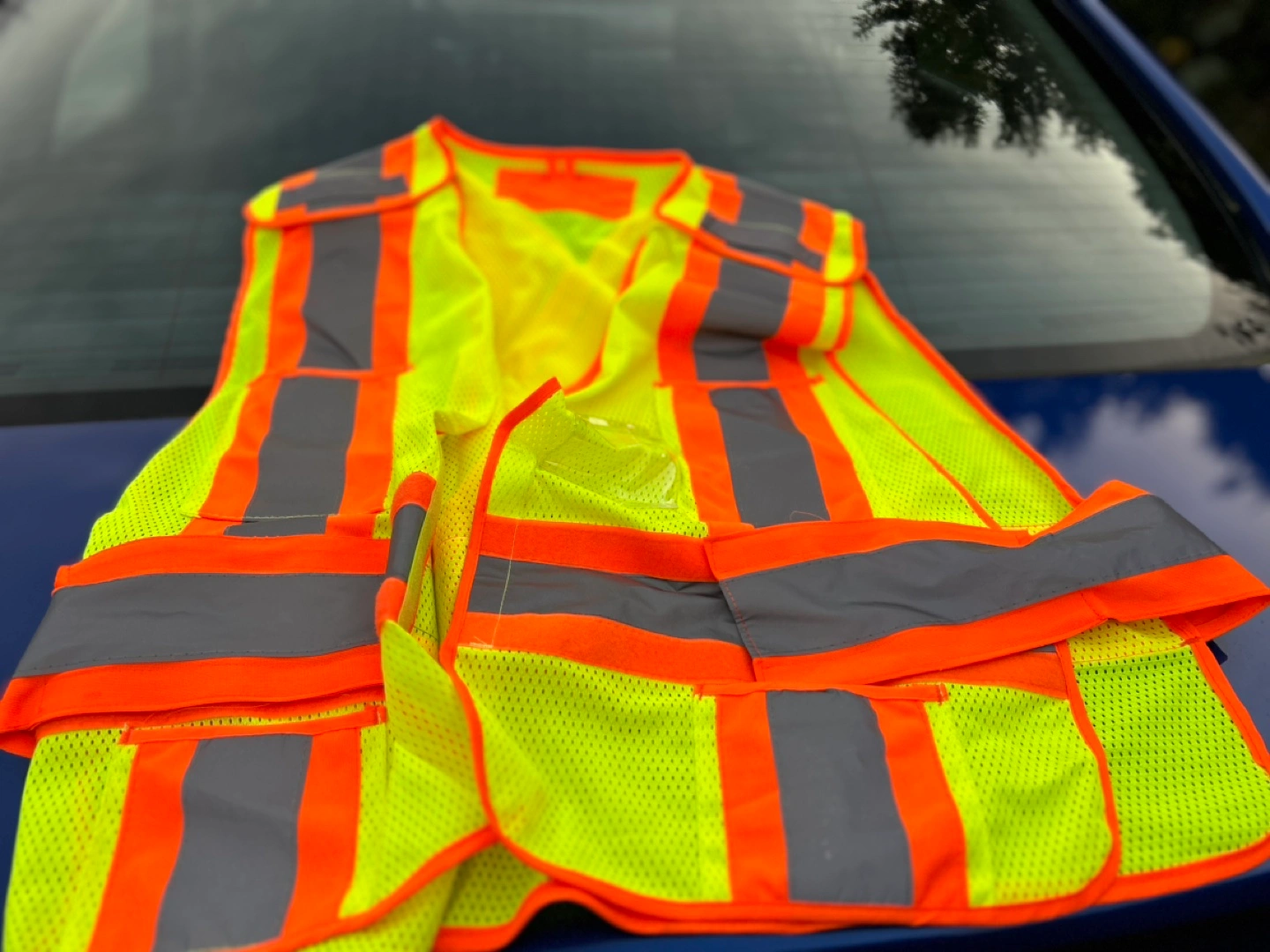 High visibility safety vest with reflective strips. Mesh material. Multiple pockets. Sorry no refunds. Cash or e-transfer only.